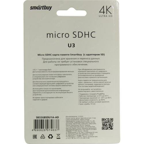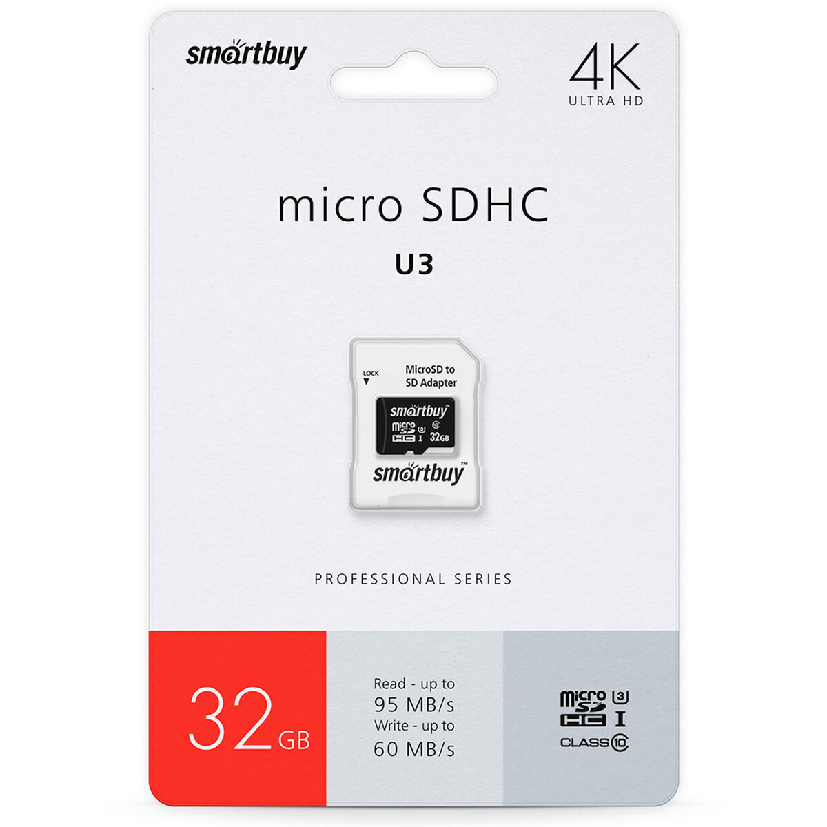Карта памяти SmartBuy MicroSD 32Gb Class 10 Pro UHS-I U3 SB32GBSDCL10U3L-01 + adapter