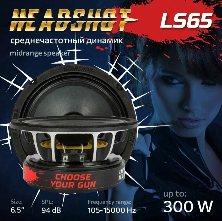 Headshot LS65 это топ в линейке динамиков HeadShot. Универсальный типоразмер 6.5 дюймов или 166 мм. позволит без труда инсталлировать данные динамики. Запредельная чувствительность 94 дБ говорит о действительно большой громкости. Диаметр звуковой катушки 1.3 дюйма позволит динамику выдержать до 300 Ватт мощности в пике. Огромная магнитная система динамика указывает на отличные импульсные характеристики. Уникальная конструкция и материалы корзины динамика. Максимальная отдача на всем диапазоне воспроизводимых частот 105-15000 Hz