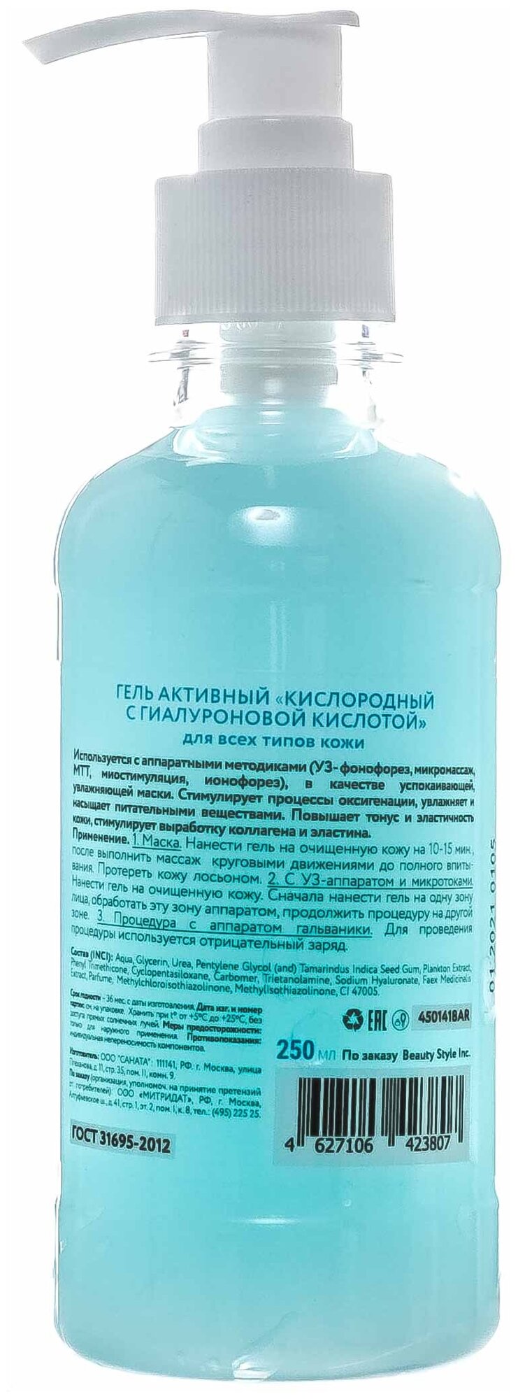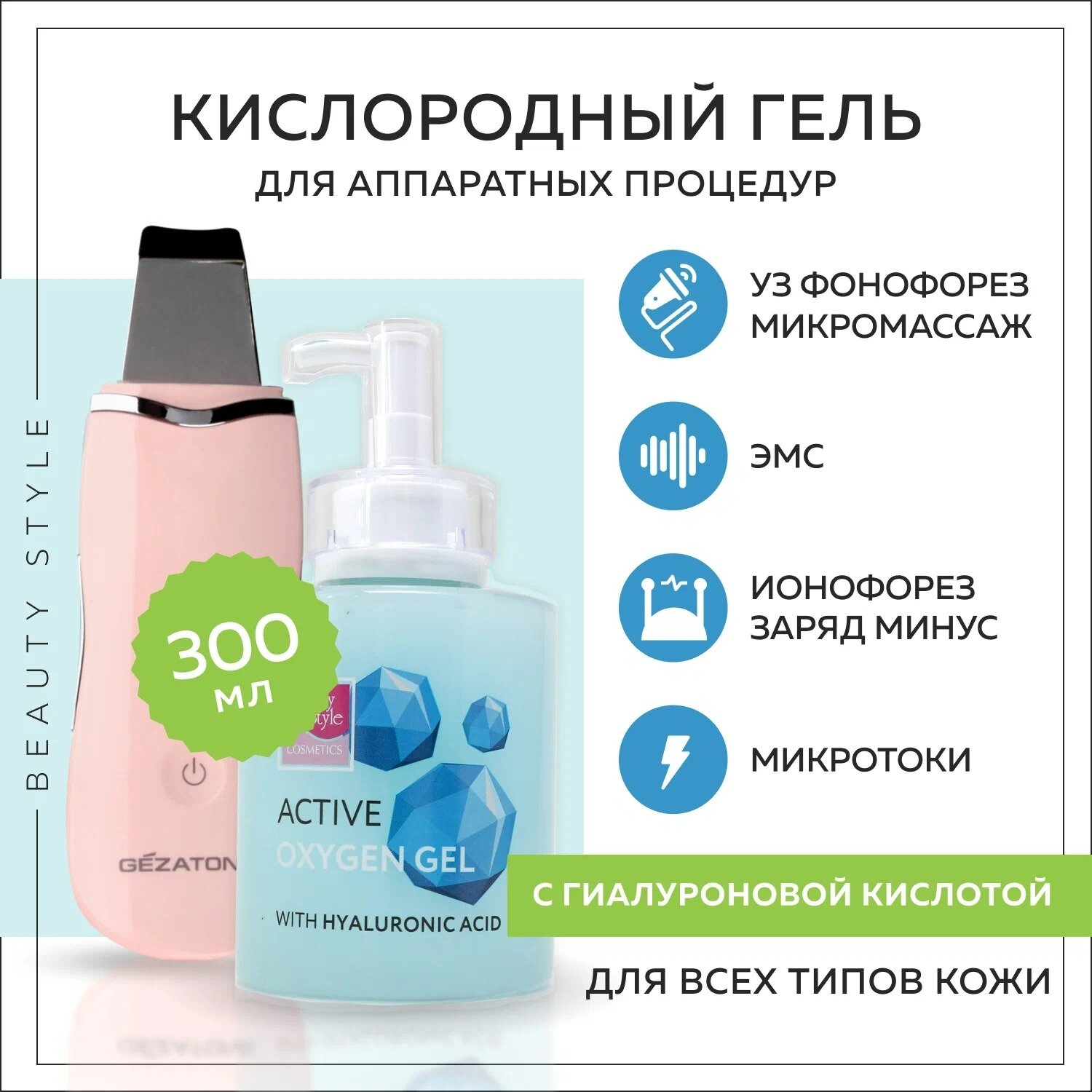 Гель активный Beauty Style "Кислородный гель с гиалуроновой кислотой" 630 мл