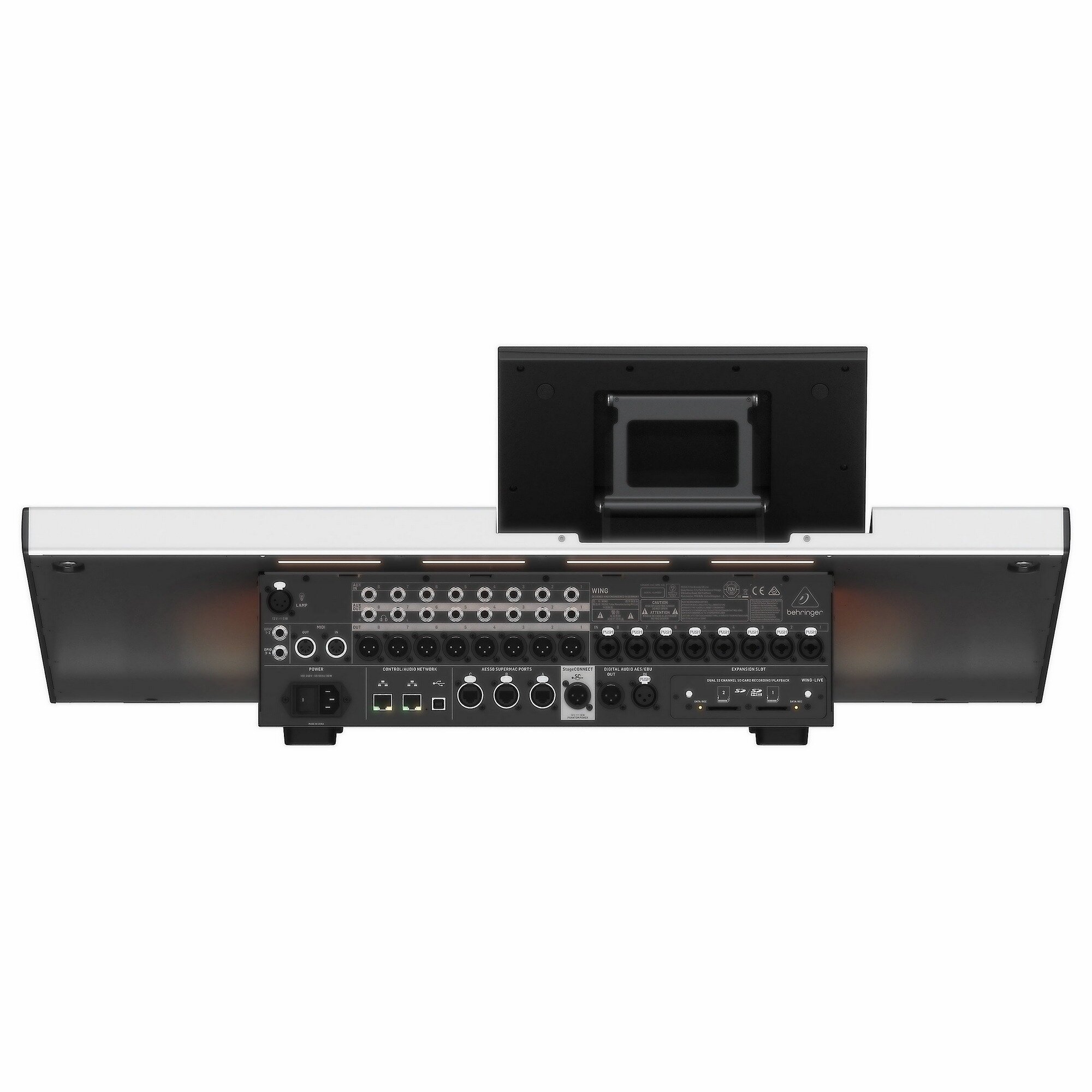 На задней части устройства имеются 8 комбинированных аналоговых входов XLR / 1/4" TRS Jack и 8 аналоговых выходов XLR. Далее расположены 8 AUX-входов и 8 AUX-выходов 1/4" TRS Jack. Поддерживается цифровое подключение по USB (64 x 64 канала), имеется три порта RJ-45 AES 50, а также интерфейс Klark Teknik StageConnect с коннектором XLR (рекомендуется DMX-кабель 110 Ом). Дополнительно имеется цифровой вход и выход XLR AES/EBU. Слот расширения имеет предустановленный картридер с поддержкой записи на карты памяти SD/SDHC. Для управления по сети имеются два порта RJ-45. Behringer оснащен MIDI-входом и выходом с разъемом 2 x 5-pin DIN, поддерживается удаленное управление GPIO через 2 x 1/4" TRS Jack. Весит микшерный пульт 24 кг.