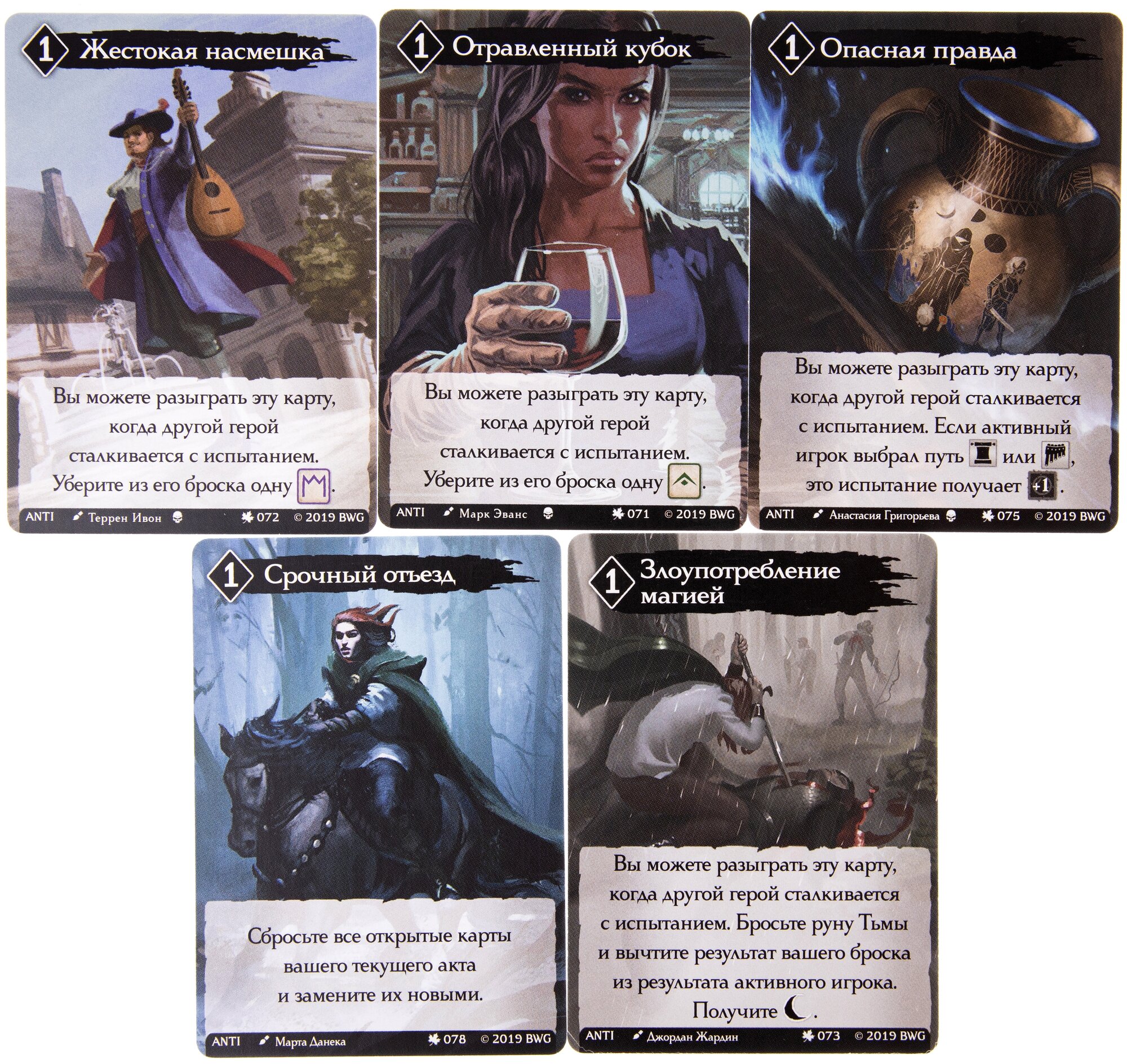 Имя Ветра – первое дополнение к Дороге Приключений, созданное на основе одноименной книги из фэнтезийного цикла Патрика Ротфуса «Хроника Убийцы Короля». Это история о мальчике по имени Квоут, чье детство проходило в странствиях с бродячими артистами и оборвалось, когда всю труппу уничтожили мифические существа. Напишите собственную историю в мире «Хроники Убийцы Короля» – изучите основы магии, попробуйте себя в игре на лютне и познайте истинные имена вещей.Цикл Патрика Ротфусса «Хроника Убийцы Короля» успел стать признанной классикой от миры фэнтези. Именно этими книгами вдохновлялись авторы Дороги Приключений, создавая базовую игру, и именно они легли в основу первого дополнения. Имя Ветра добавит в игру более 80 новых карт – а это еще больше путей, возможностей и испытаний для вашего героя. Поступите в Университет, разыщите тайные тропы Фейе, откройте для себя искусство именования и попытайтесь победить самих чандриан.Магия в мире Ротфусса строится на понимании истинных имен всех вещей. Зная истинное имя предмета или явления, вы можете управлять им. Дополнение вводит в игру новую механику – теперь в случае провала испытания ваш герой может попытаться изучить имя железа, огня или ветра. При успехе вы сможете призывать их на помощь в будущих испытаниях.Несмотря на то, что многие карты в Имени Ветра опираются на события одноименной книги, это дополнение станет отличным подарком любому фанату Дороги Приключений. Новые испытания сделают игру еще интереснее, а новая механика имен добавит разнообразия каждой партии.Внимание! Для игры необходима базовая версия Дорога приключений!