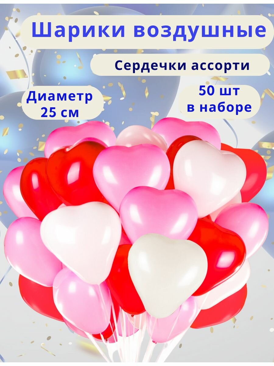 На сегодняшний день товар «Золотая сказка Шары воздушные в форме сердца 3 цвета 25 см 50 шт.» можно купить с кешбеком в 1 магазине: Яндекс.Маркет