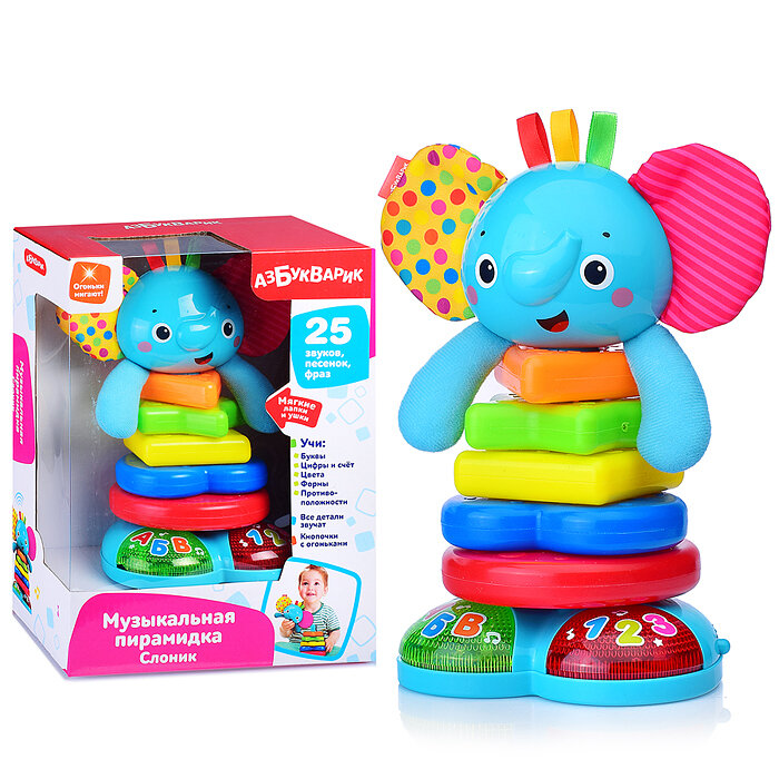 Сервис сравнения цен СкидкаГИД предлагает сравнить цены на товар «Развивающая игрушка Азбукварик Музыкальная пирамидка Слоник»