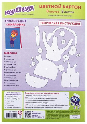 Набор цветного картона. Прекрасно подойдет для воплощения творческих замыслов ребенка. На задней стороне обложки размещена инструкция по созданию аппликации.