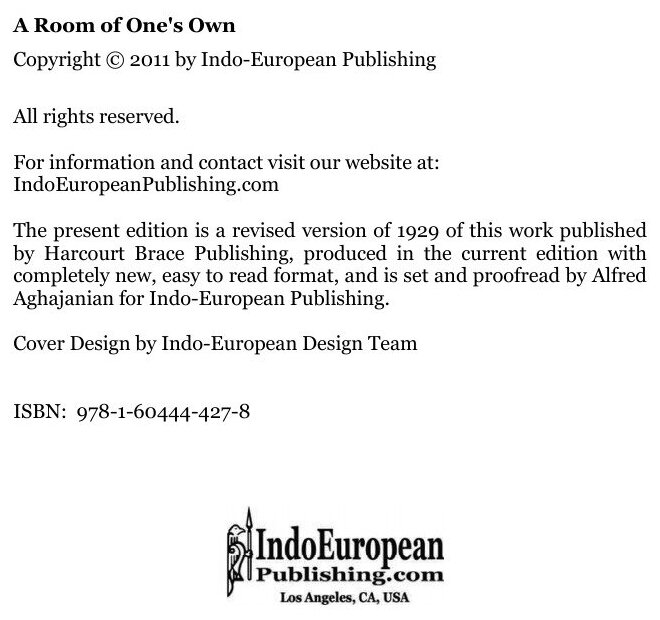 Книга: A Room of Ones Own (Virginia Woolf); Indo-European Publishing, 2011