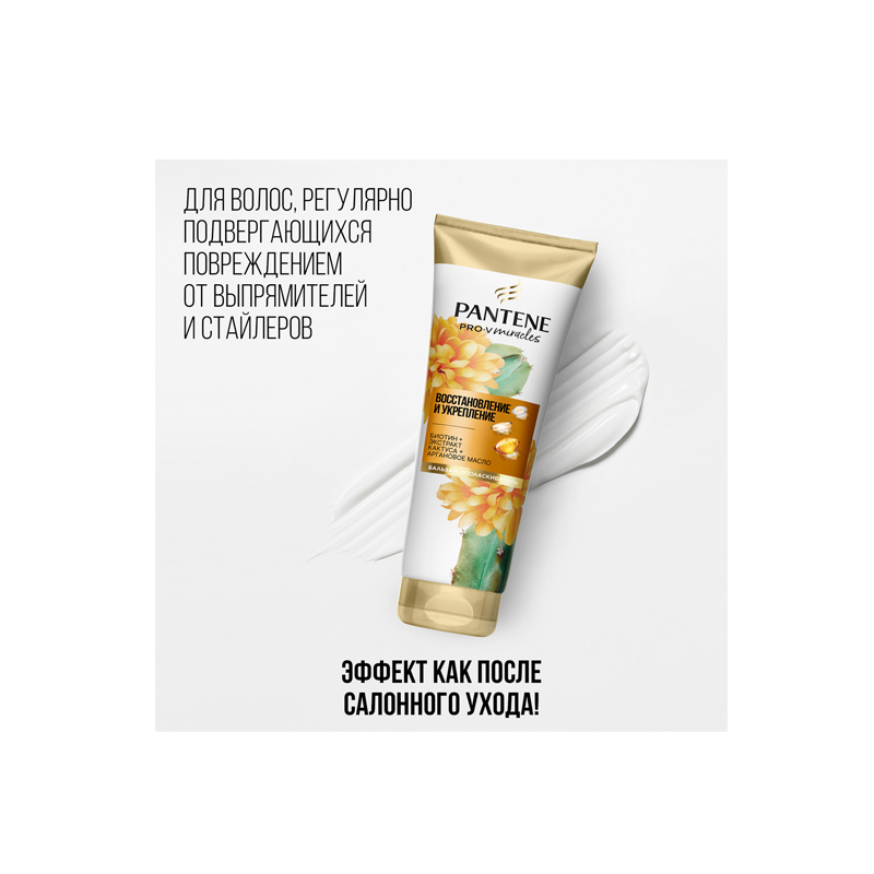 Рantene (Пантин) Pro-V Miracles это высокопитательная формула Pro-V для волос, которые нуждаются в чуде. Коллекция Восстановление и укрепление сочетает в себе силу комплекса Pro-V с биотином, экстрактом кактуса и аргановым маслом. Она специально создана для волос, регулярно подвергающихся повреждениям от выпрямителей и стайлеров. Бальзам-ополаскиватель Восстановление и укрепление помогает восстановить ослабленные, поврежденные волосы и предотвратить их повреждение в будущем. Благодаря уникальной формуле с витаминами и минералами, протестированной специалистами Швейцарского института витаминов, он насыщает волосы необходимыми питательными веществами, придавая им стойкость и более здоровый внешний вид. В сочетании с шампунем, маской и кремом для укладки 3в1 из коллекции Восстановление и укрепление бальзам-ополаскиватель предотвращает до 90% повреждений* волос. Теперь ваши волосы будут готовы ко всему! *Повреждений от стайлинга, по сравнению с шампунем P&G без кондиционирующего эффекта.