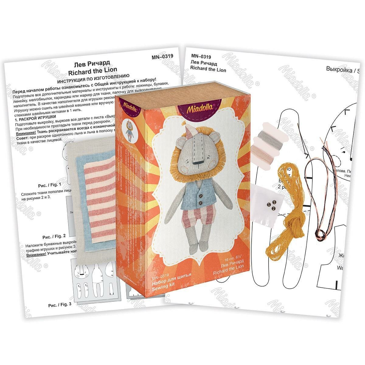 В набор входят все необходимые материалы для изготовления игрушки, кроме наполнителя: лен, пуговицы, пряжа «Ирис» (хлопок), хлопчатобумажные нитки мулине Gamma, швейные нитки, швейная игла, выкройка, подробная инструкция с картинками.