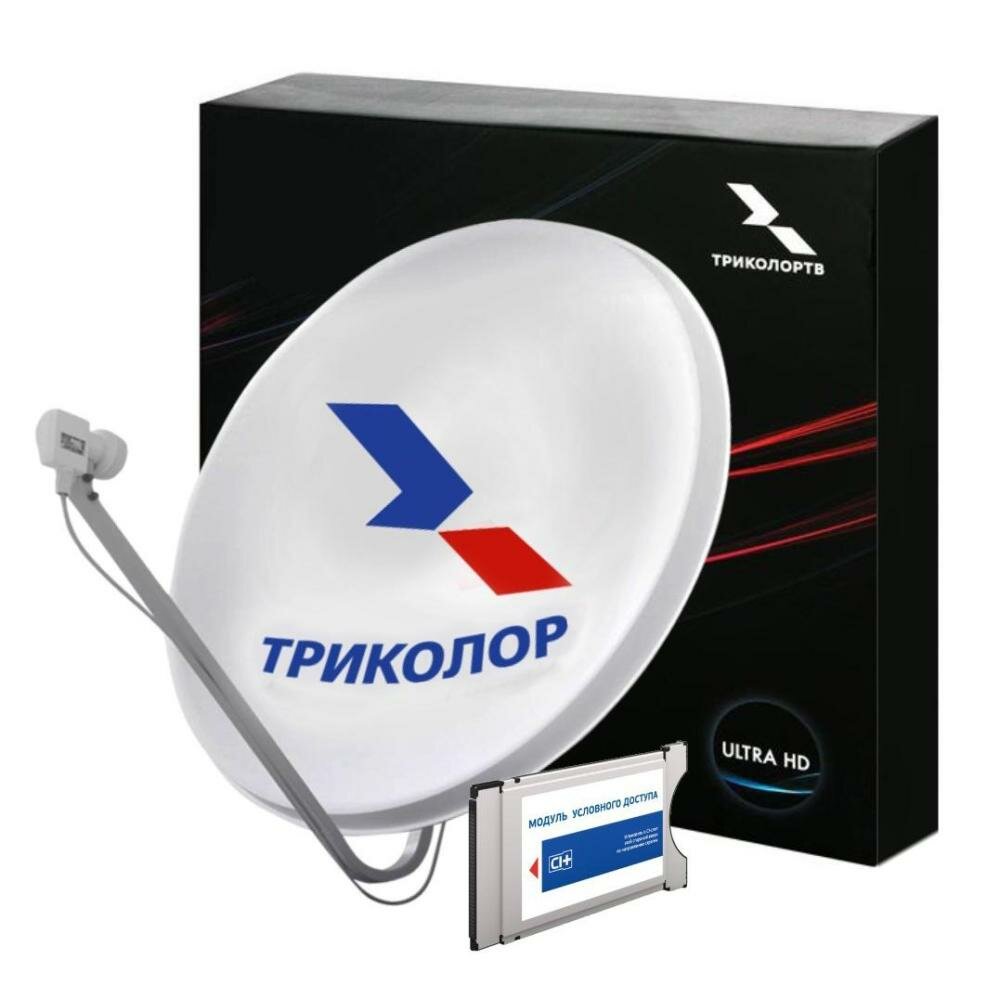 Комплект спутникового ТВ Триколор с CAM-модулем предназначен для просмотра контента в регионе Сибирь. В комплект уже включен 1 год подписки «Единый Ultra»! А это: 160 каналов, 40 HD каналов, 6 каналов 4K (Ultra HD) – уникально большой выбор 4К каналов поможет насладиться ТВ с разрешением 4К. Просмотр Триколора на 5 устройствах, в том числе Smart TV, смартфонах, планшетах, ПК через приложение «Триколор Кино и ТВ». При просмотре через приложение «Триколор Кино и ТВ», дополнительно будут доступны: 30000 фильмов и сериалов в онлайн-кинотеатре, включая сервис PREMIER и Amediateka, просмотр архива программ глубиной до 7 дней, еще более 40 каналов, функции «Пауза»/«Перемотка»/«Смотреть с начала». Комплект спутникового ТВ Триколор с CAM-модулем подходит для ТВ, оснащенных слотом или адаптером CI/CI+. САМ-модуль вставляется непосредственно в ТВ, не занимает дополнительное место и позволяет использовать один пульт управления от ТВ.