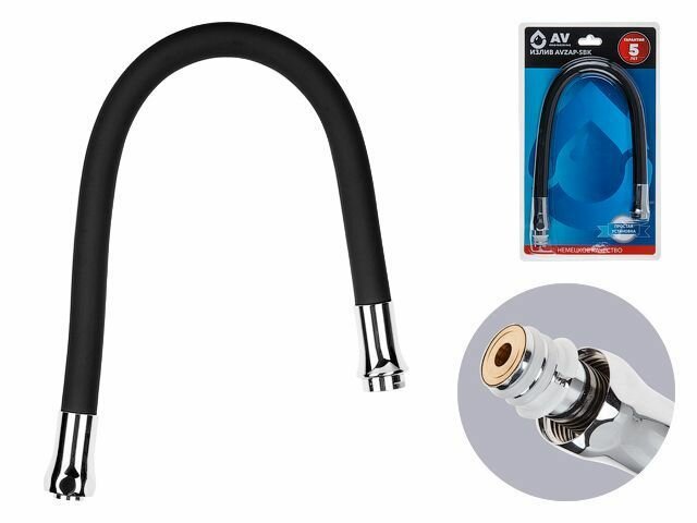 Излив гибкий для смесителя AV ENGINEERING чёрный () - представляет из себя рефлекторный излив для смесителя. Материал наружного шланга: силикон с пружиной из нержавеющей стали. Материал внутреннего шланга: ПВХ ACS. Гайка: латунь (цвет - хром).