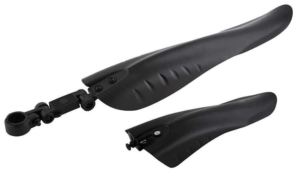 Комплект универсальных крыльев для велосипеда, совместимых со всеми креплениями современных велосипедов. Заднее крыло крепится за подседельную трубу с помощью хомута и имеет регулируемый угол наклона, переднее крепится в шток вилки. Комплект крыльев защитит вашу одежду от водиных брызг и грязи, летящих из под колес велосипеда.