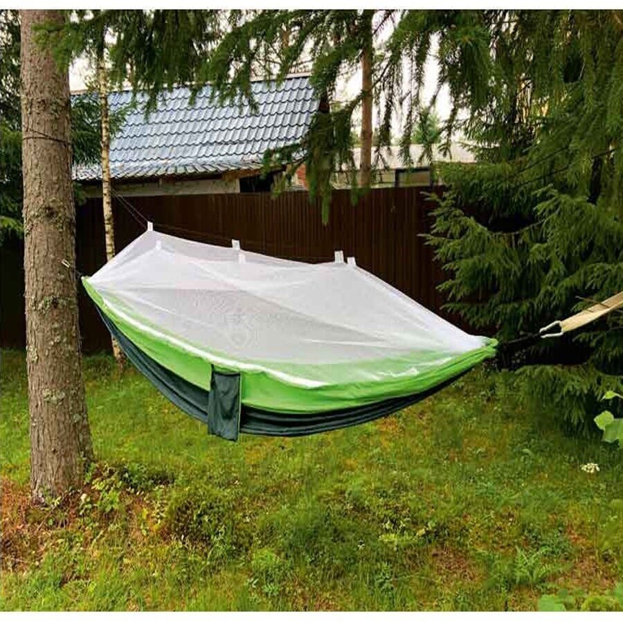 Прочный, надёжный, с защитой от насекомых, просторный. Удобный в использовании гамак. Очень надёжные стальные карабины и прочная верёвка. Удобная противомаскитная сетка, никто не залетает и не заползает. Широкое прочное полотно. При желании можно уместиться вдвоём.