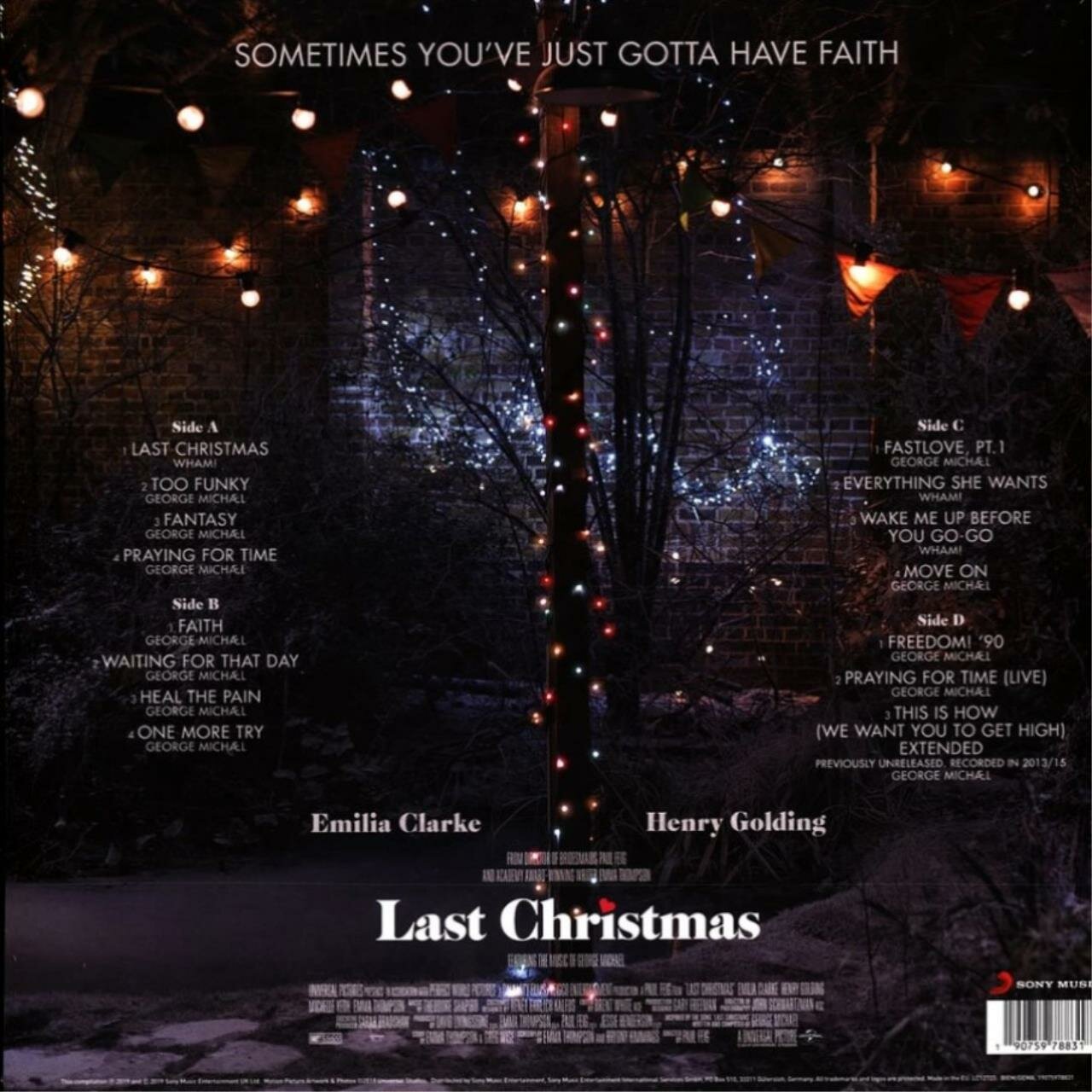 Sony Music с гордостью представляет альбом Last Christmas — саундтрек к долгожданной романтической комедии Universal Pictures «Рождество на двоих», вдохновленной творчеством Джорджа Майкла и группы Wham!. В создании фильма приняли участие режиссер Пол Фиг, автор сценария и обладатель премии «Оскар» Эмма Томпсон, а также Эмилия Кларк («Игра Престолов», Генри Голдинг («Безумно богатые азиаты») и Мишель Йео. В саундтрек-альбом Last Christmas войдут 3 знаменитых песни Wham! (в том числе ‘Last Christmas’ и ‘Everything She Wants’), а также еще 12 композиций Джорджа Майкла времен его сольной карьеры.