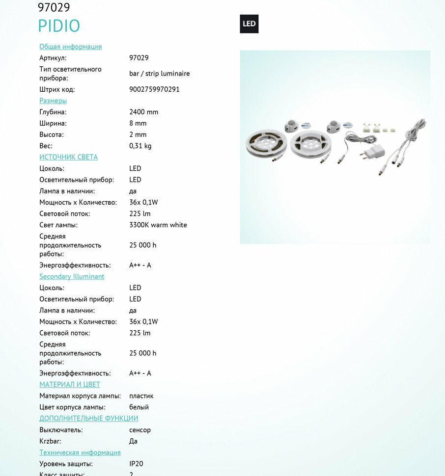 Сервис сравнения цен СкидкаГИД предлагает сравнить цены на товар «24м. Комплект светодиодной ленты теплого цвета 3300К 36W IP20 с датчиком движения Pidio Eglo 97029 Pidio 97029»
