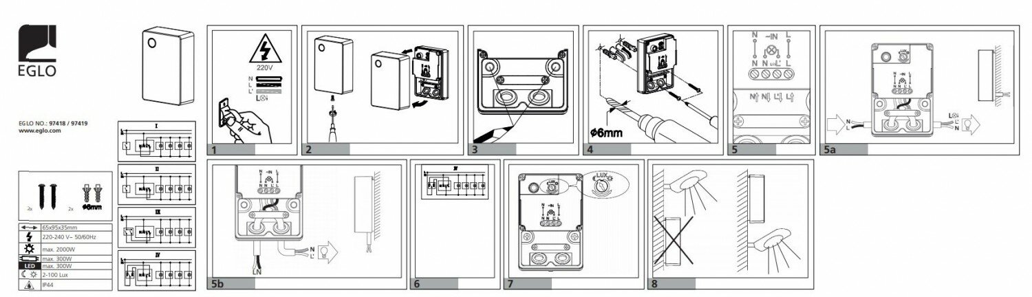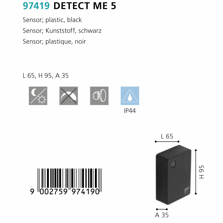 Электротовары Eglo 97419 серии DETECT ME 5. Хорошо впишется в любой интерьер. Размеры 6.5x0x9.5 cm. Параметры пылевлагозащиты IP — 44. Идеально подходит на улицу. Страна происхождения бренда — АВСТРИЯ.
