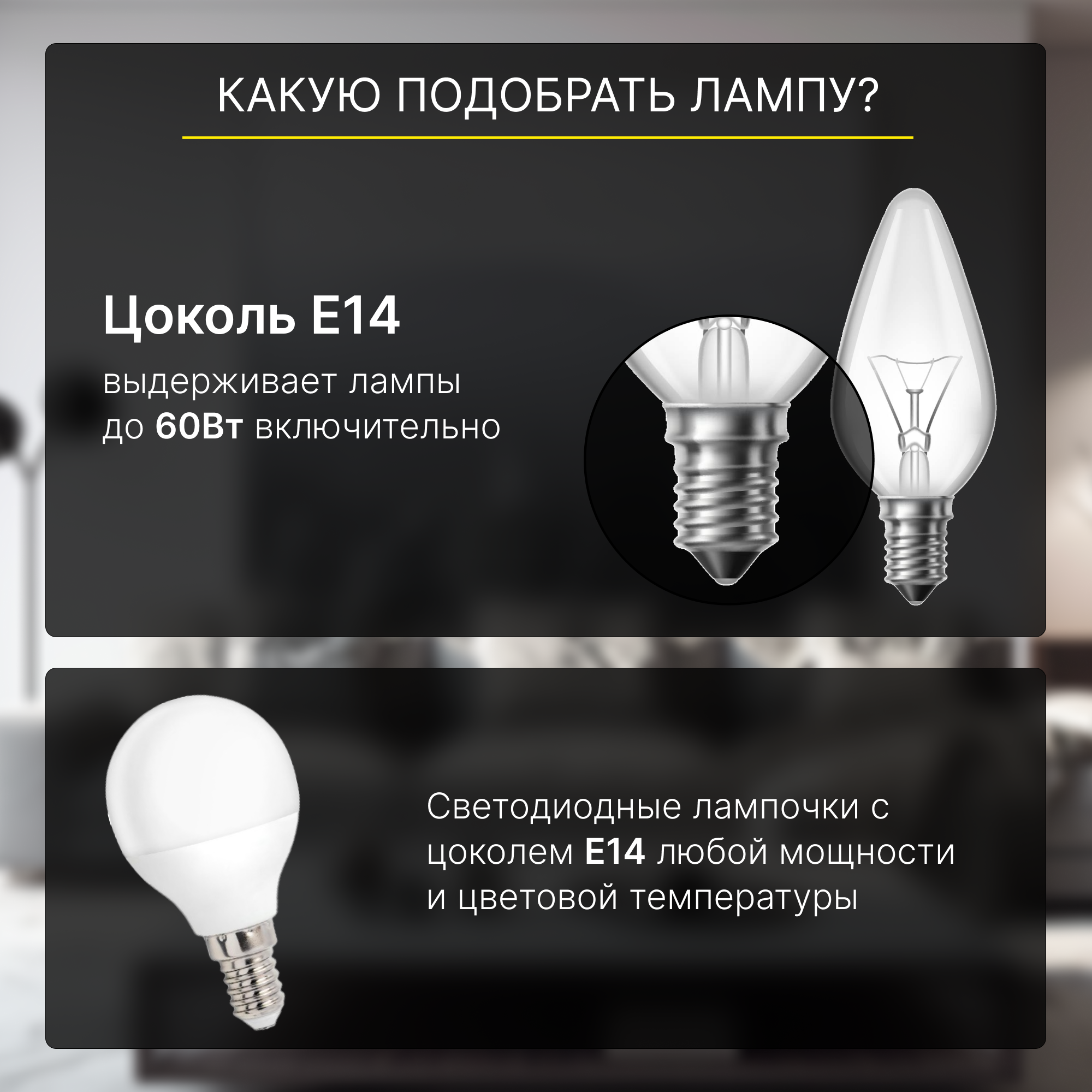 | Тип цоколя ламп | E14 |