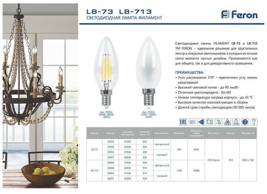 Лампочка светодиодная филаментная 25955 - продукт известной компании Feron (Китай).