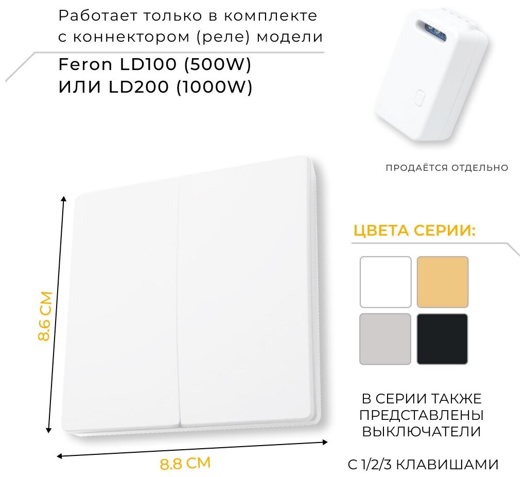 Выключатель беспроводной FERON TM82 SMART 230V 500W двухклавишный белый 41129