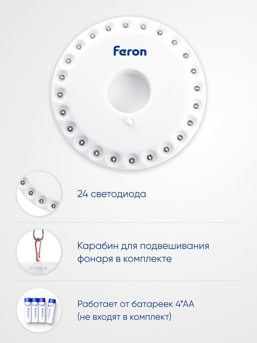 Кемпинговый фонарь с карабином на батарейках 4*AA Feron TH2501 41684