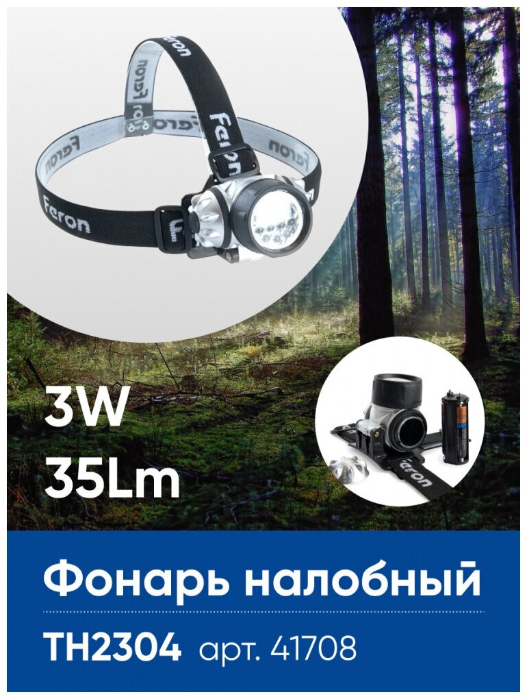 Налобный фонарь на батарейках 3*AAA Feron TH2304 41708