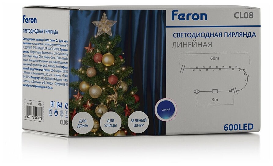 На сегодняшний день товар «60м. Светодиодная гирлянда линейная 600LED (желтый) IP44 Feron CL08 41621» можно купить с кешбеком в 1 магазине: Яндекс.Маркет