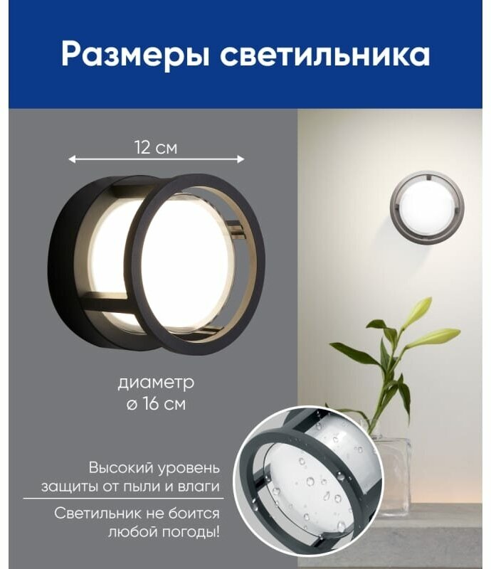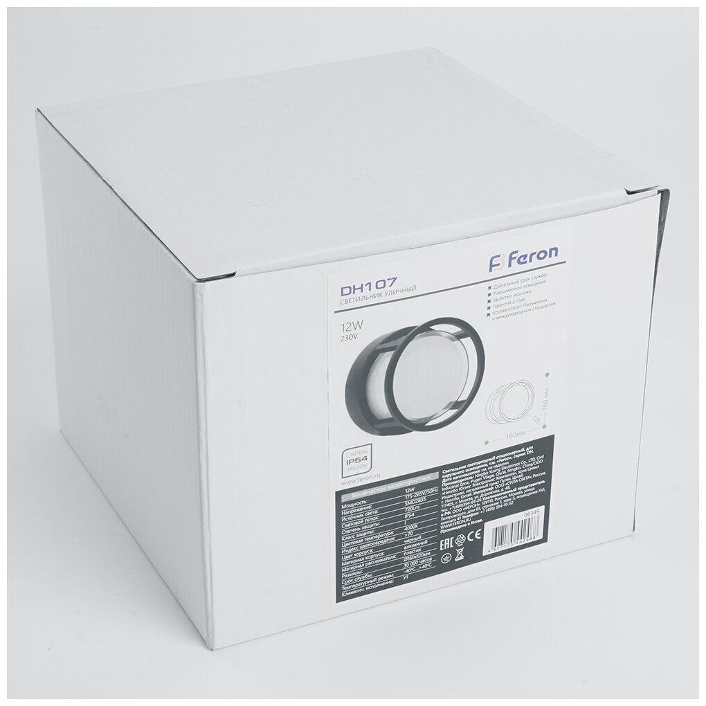 Светильник уличный светодиодный, на стену (ДБУ) FERON DH107, серия Мельбурн, 12W, 4000К (белый натуральный), 175-265V/50Гц, 720Lm, IP54, 60LED*SMD2835, класс защиты 1, раб.t -40°C +40°C, цвет черный, корпус алюминий, 160*160*120мм,