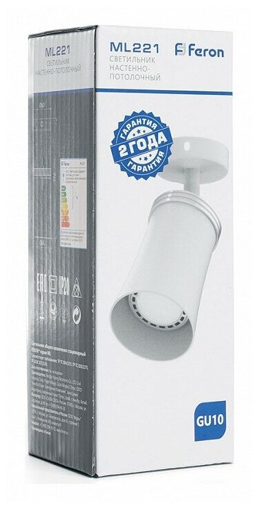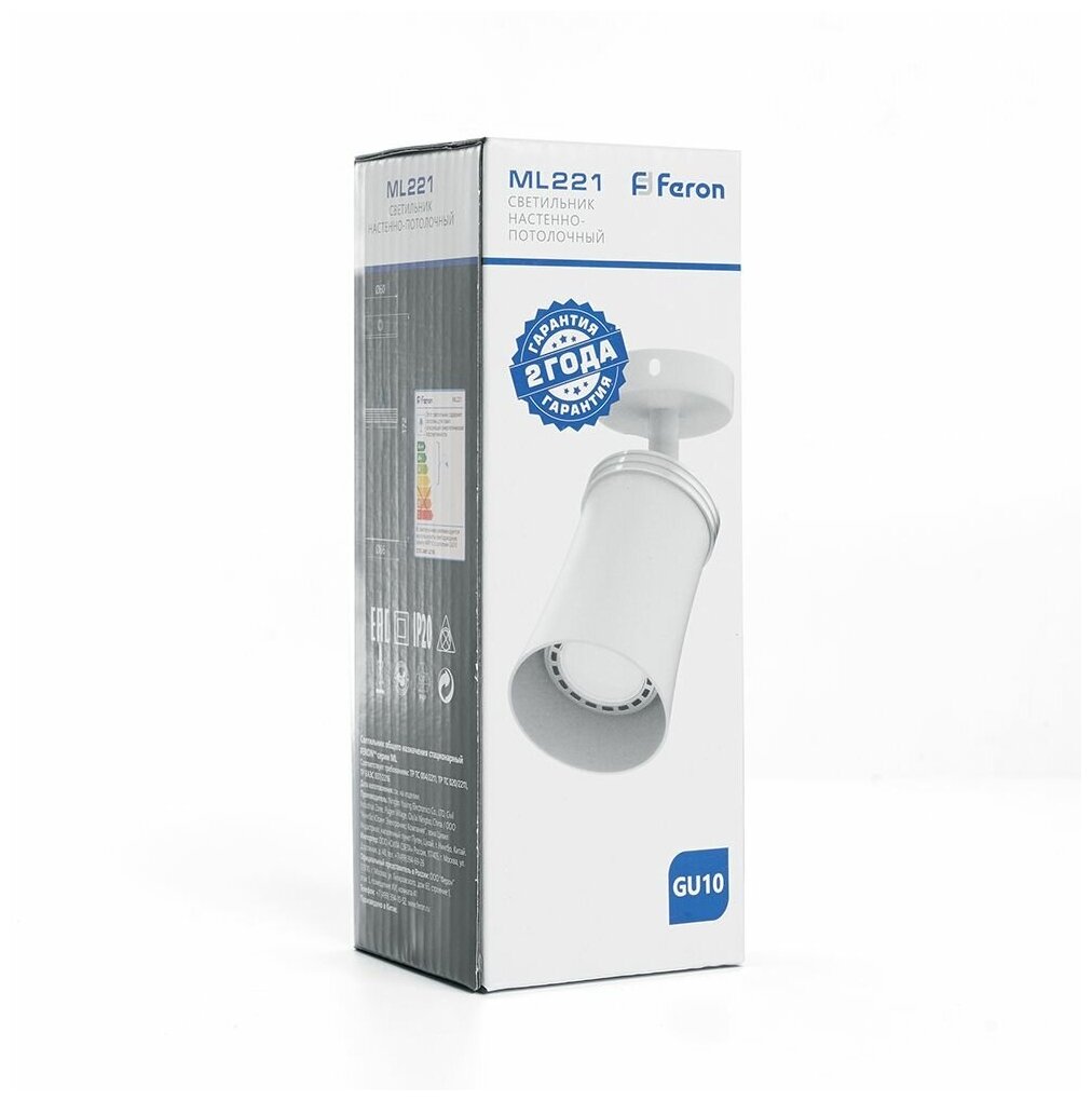 Светильник накладной под лампу, поворотный (ИВО) FERON ML221, GU10 50W, 230V, IP20, цвет белый, корпус алюминий, 66*66*172