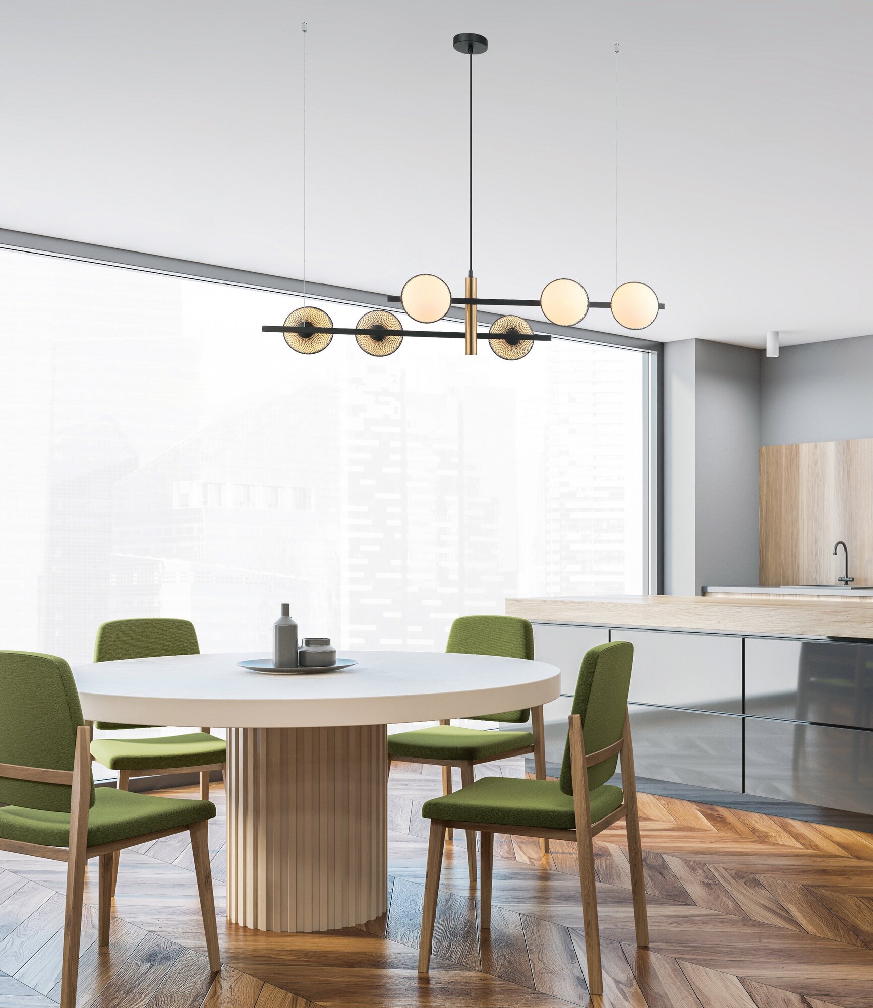 Подвесной светильник Odd 2826-6P - продукт известной компании Favourite (Германия). Имеет максимальную мощность 150 Вт, освещает площадь до 10 кв. м. Отлично подойдет для таких мест, как гостиная, кухня, офис. Впишется в интерьеры следующих стилей: современный.