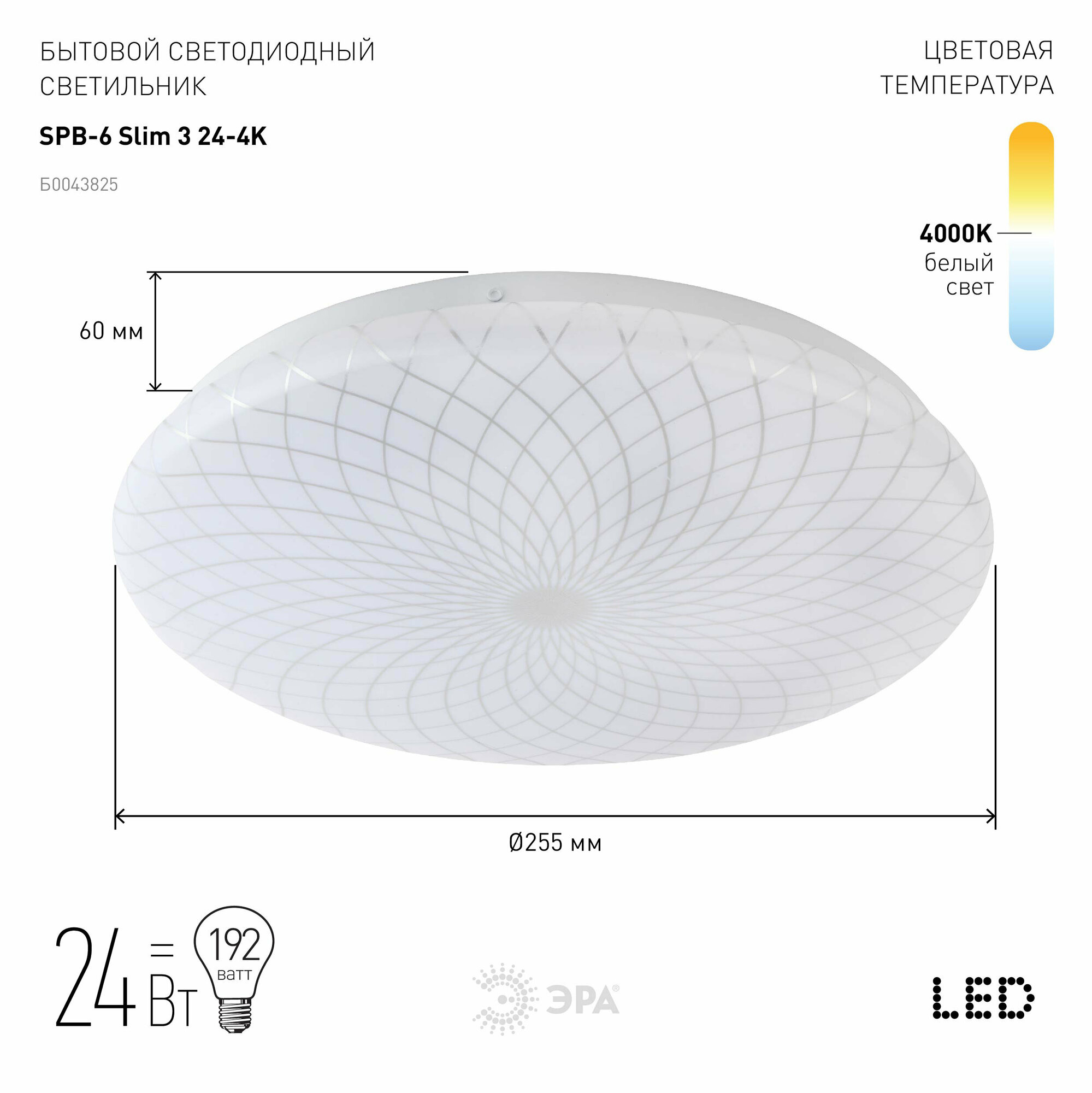 Светодиодный потолочный светильник Эра SPB-6 ''Slim 3'' 24-4K (Б0043825)