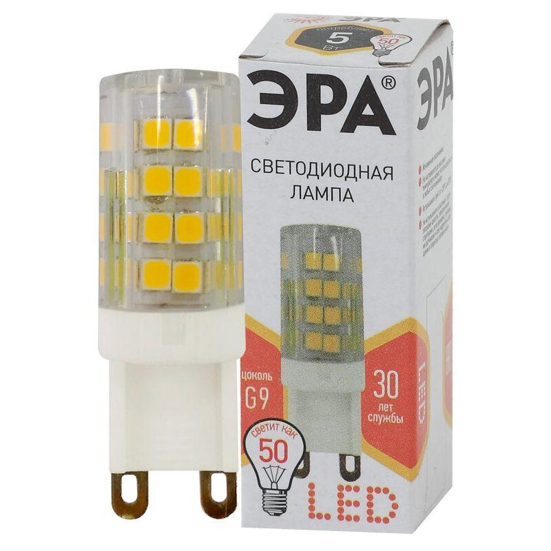 Светодиодная лампа G9 5W 2700К (теплый) Эра LED JCD-5W-CER-827-G9 (Б0027863)