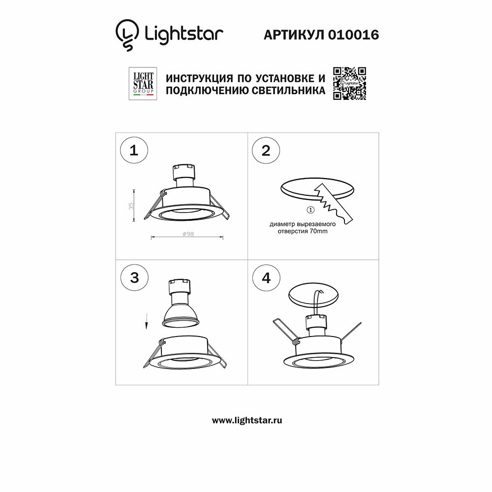 010016 Встраиваемый точечный светильник Lightstar Levigo