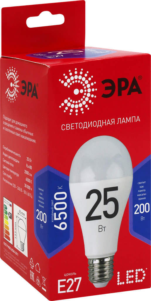 Эра Б0048011 Лампочка светодиодная RED LINE LED A65-25W-865-E27 R Е27 / E27 25 Вт груша холодный дневной свет