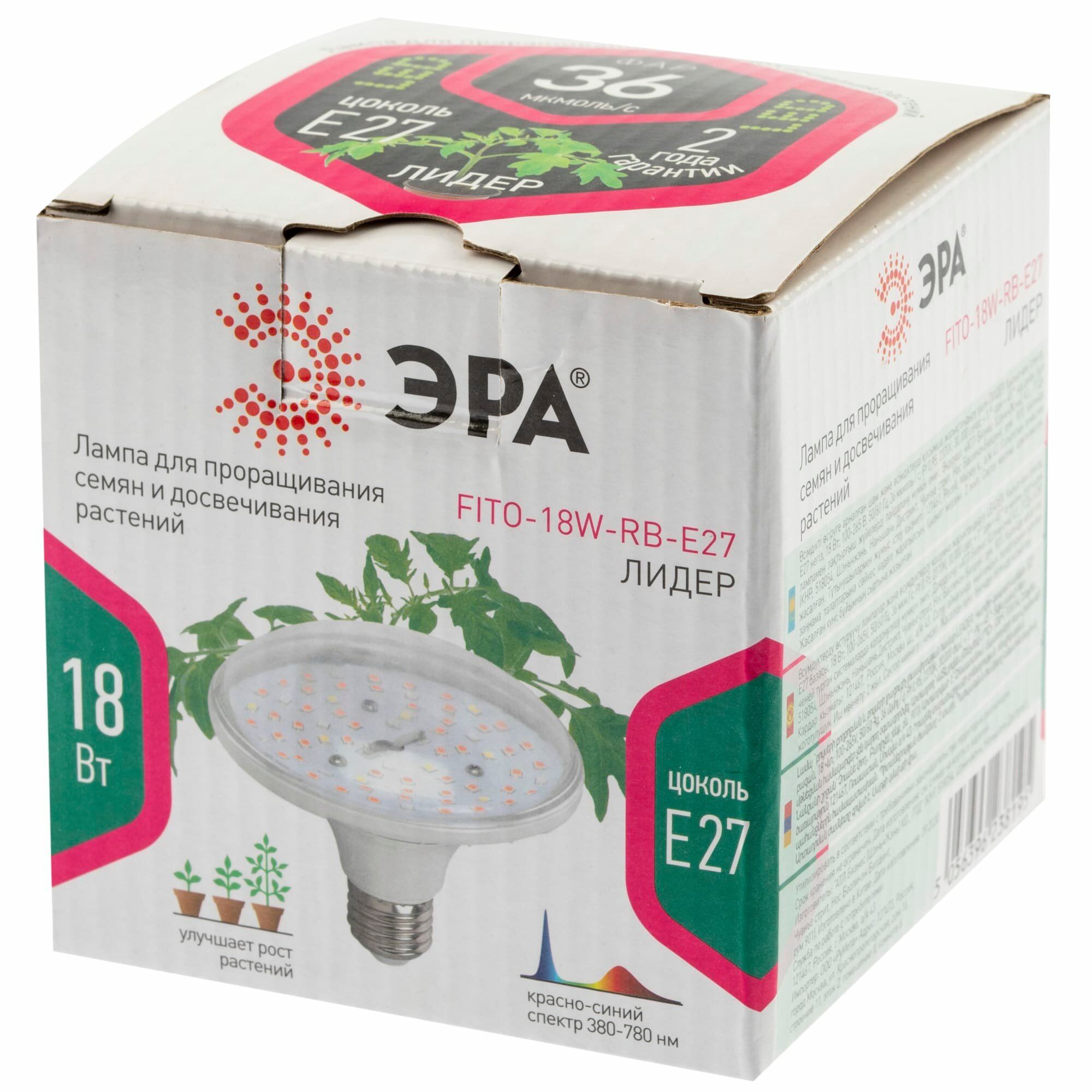 Светодиодная Фито лампа для растений E27 18W 2370 (теплый) Эра FITO-18W-RB-E27 (Б0049533)