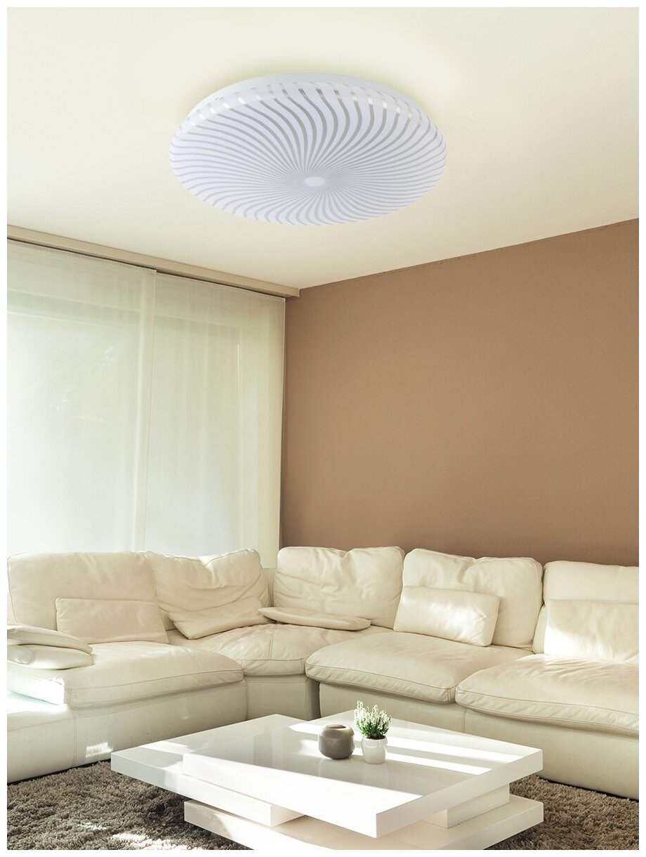 Декор рассеивателя в виде динамичного поблескивающего узора идеально сочетается с круглым плоским корпусом. LED светильник идеально подойдет для детской, спальни или коридора.