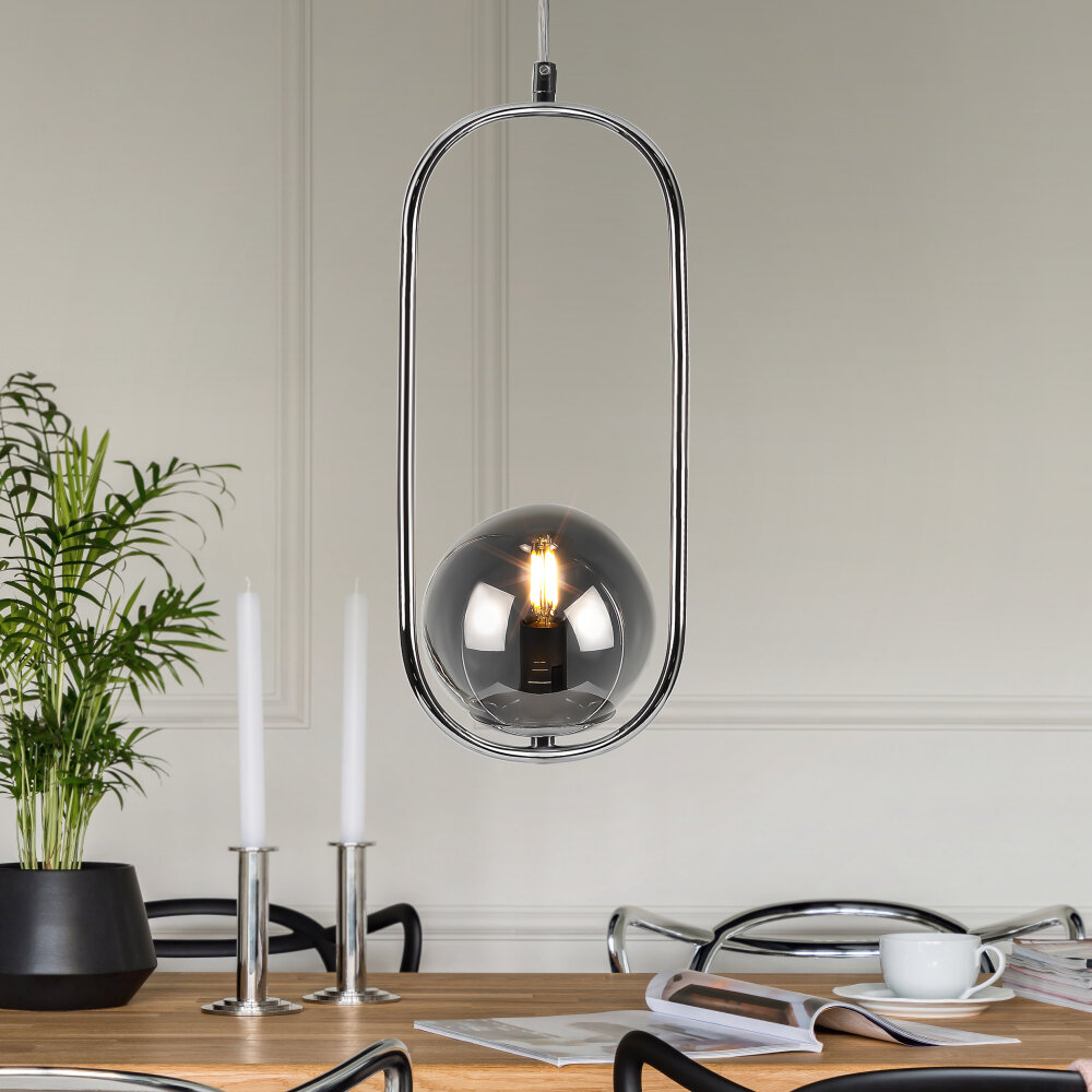 Подвесные светильники Pauline выглядят современно и станут актуальным решением для кухни, гостиной, спальни в квартире или загородном доме. Созданные в сдержанной светло-серой цветовой гамме, они имеют элегантную хромированную арматуру и крупный стеклянный плафон с дымчатым тонированием. Такие подвесные светильники отлично справятся с ролью люстры как в модных интерьерах, так и в традиционных.