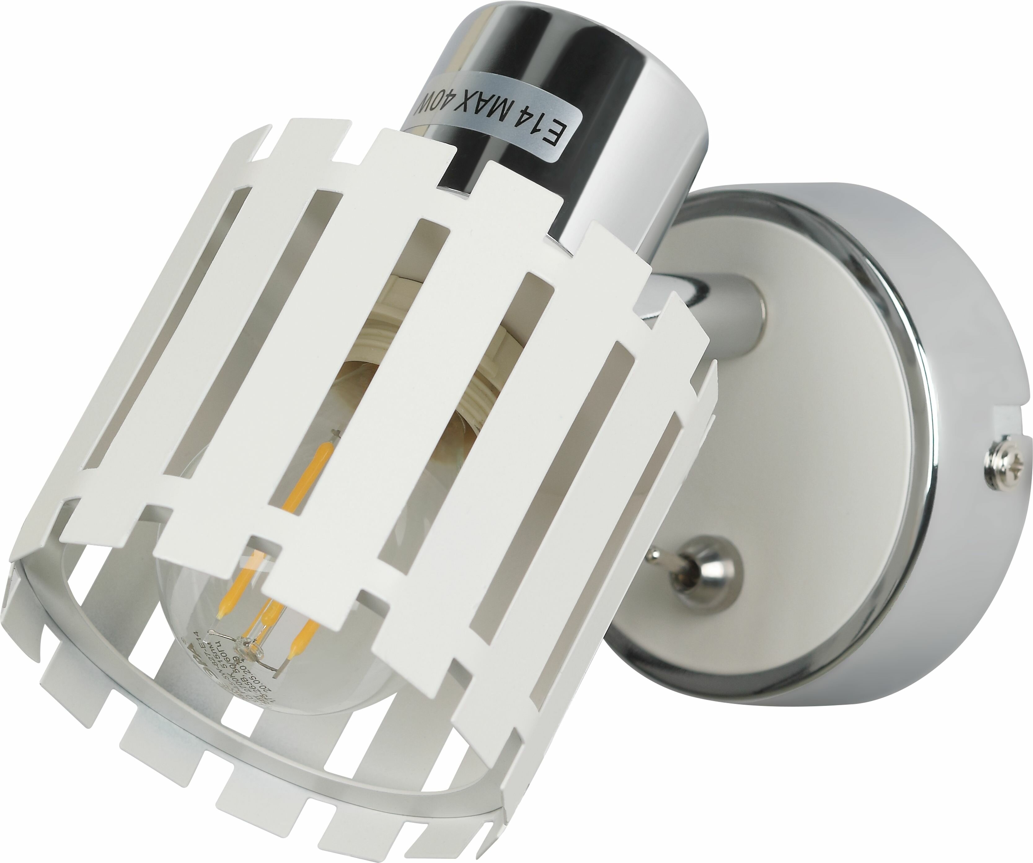Rivoli Liese - металлические настенно-потолочные светильники, успешно соединившие в себе традиции и современность. Стильный решетчатый плафон. Удобный выключатель на корпусе. Стойкое гальваническое окрашивание в базовый белый цвет. Настенные светильники Liese от итальянского бренда Rivoli имеют выключатель и корпус с поворотным механизмом. Они позволяют эффективно зонировать пространство, расставлять световые акценты. Направление света можно менять в зависимости от ситуации применения одновременно подсветить зону отдыха или рабочую столешницу. Спот поворотный Liese освещает площадь 3 м². Используется с лампой GU10 мощностью 50 Вт.