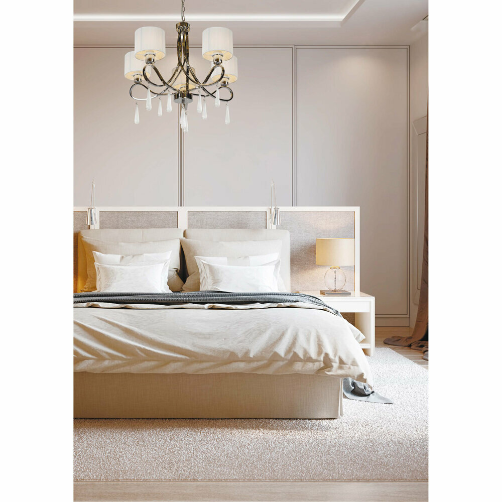 Подвесная люстра Bella RM1029/5CR - продукт известной компании iLamp (Россия). Имеет максимальную мощность 200 Вт, освещает площадь до 10 кв. м. Отлично подойдет для таких мест, как гостиная, спальня, кухня, над обеденным столом, кабинет. Впишется в интерьеры следующих стилей: классический.