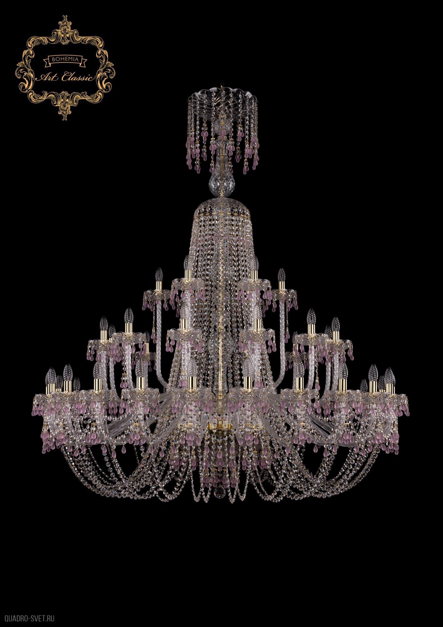 Хрустальная подвесная люстра 11.24.24+12+6.530.XL-168.Gd.V7010 - продукт известной компании Art Classic (Чехия). Имеет максимальную мощность 1680 Вт, освещает площадь до 93 кв. м. Отлично подойдет для таких мест, как зал, холл. Впишется в интерьеры следующих стилей: классический, барокко.
