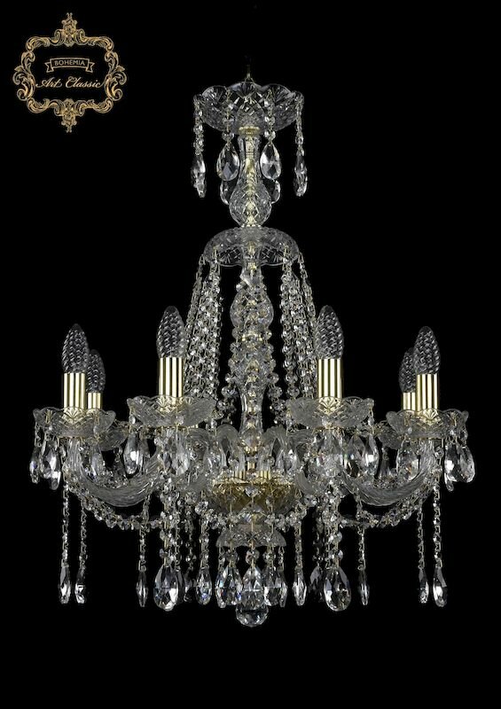Хрустальная подвесная люстра 11.12.8.195.XL-68.Gd.Sp - продукт известной компании Art Classic (Чехия). Имеет максимальную мощность 320 Вт, освещает площадь до 18 кв. м. Отлично подойдет для таких мест, как холл, зал. Впишется в интерьеры следующих стилей: классический, барокко.