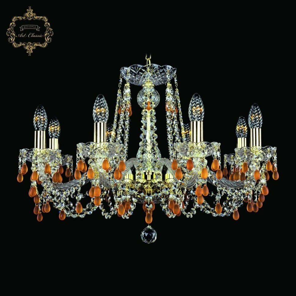 Хрустальная подвесная люстра 11.24.8.220.Gd.V1003 - продукт известной компании Art Classic (Чехия). Имеет максимальную мощность 320 Вт, освещает площадь до 18 кв. м. Отлично подойдет для таких мест, как зал, холл. Впишется в интерьеры следующих стилей: классический, барокко.