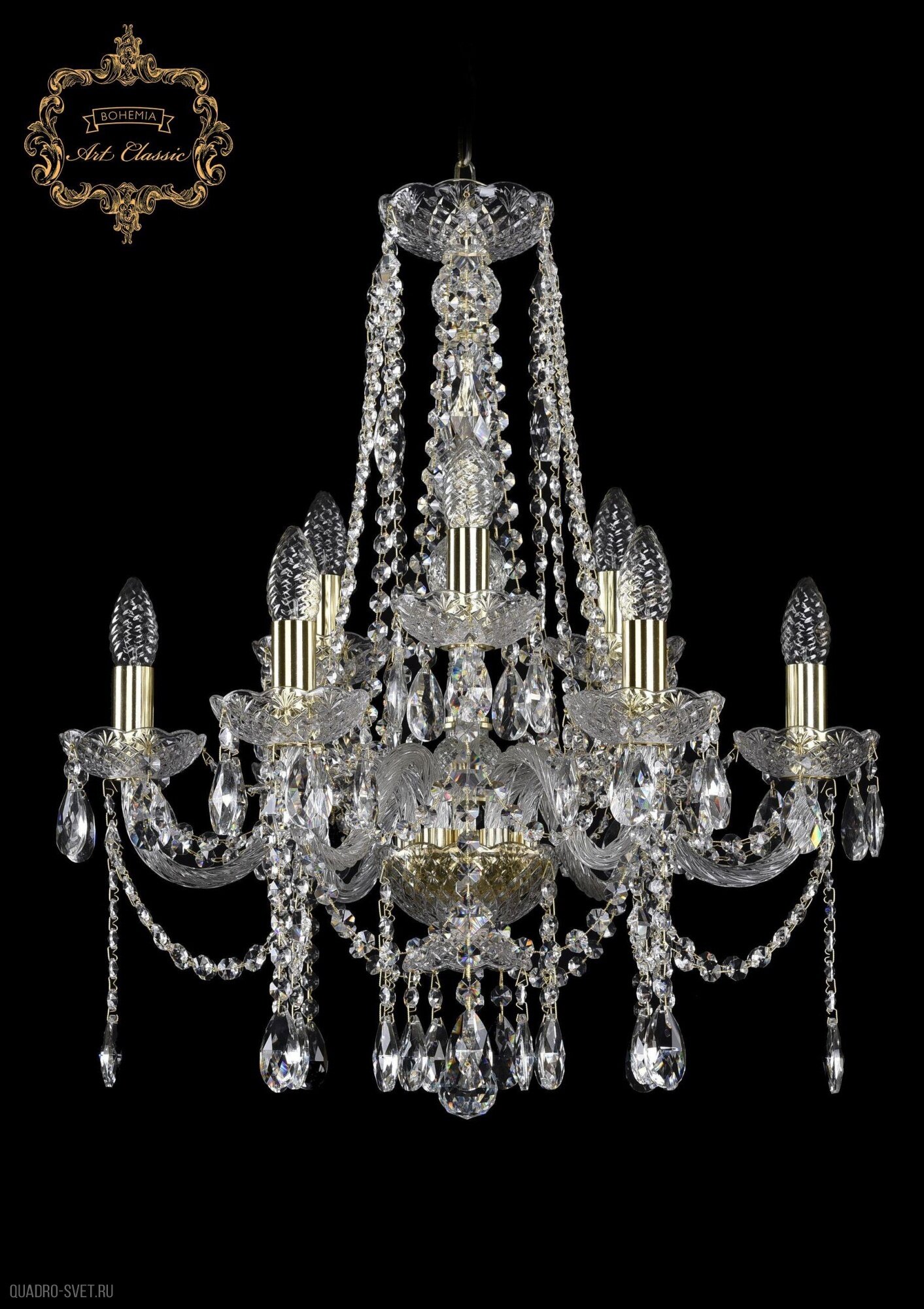 Хрустальная подвесная люстра 11.12.6+3.195.h-63.Gd.Sp - продукт известной компании Art Classic (Чехия). Имеет максимальную мощность 360 Вт, освещает площадь до 20 кв. м. Отлично подойдет для таких мест, как зал, холл. Впишется в интерьеры следующих стилей: классический, барокко.