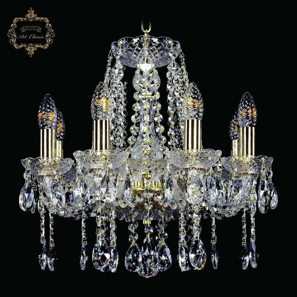 Хрустальная подвесная люстра 11.12.8.141.Gd.Sp - продукт известной компании Art Classic (Чехия). Имеет максимальную мощность 320 Вт, освещает площадь до 18 кв. м. Отлично подойдет для таких мест, как зал, холл. Впишется в интерьеры следующих стилей: классический, барокко.