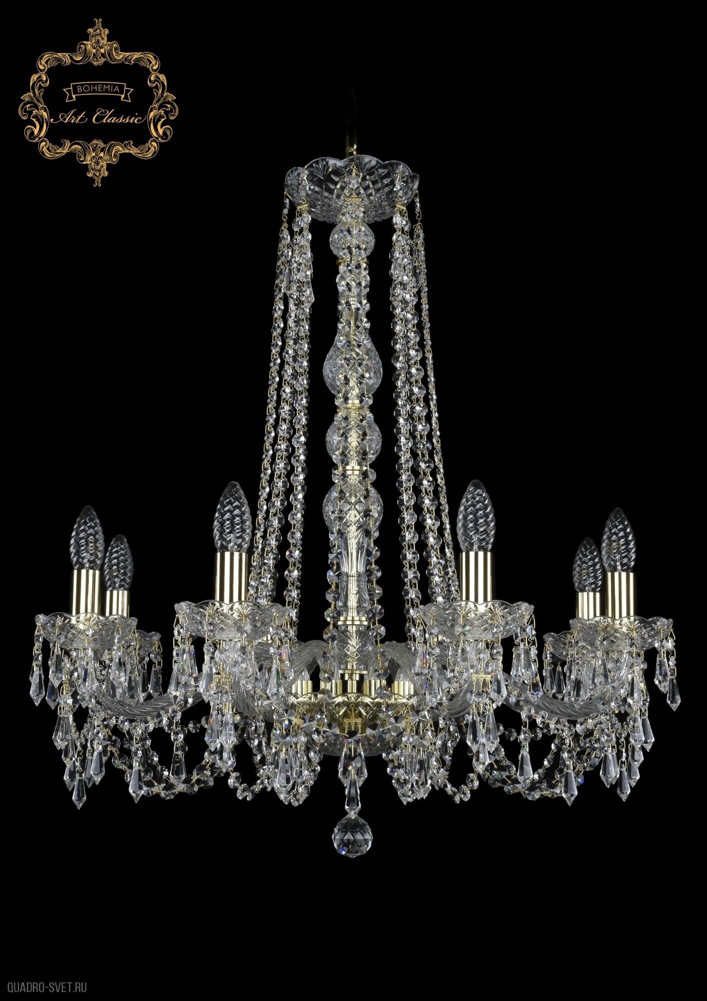 Хрустальная подвесная люстра 11.23.8.220.h-70.Gd.Dr - продукт известной компании Art Classic (Чехия). Имеет максимальную мощность 320 Вт, освещает площадь до 18 кв. м. Отлично подойдет для таких мест, как зал, холл. Впишется в интерьеры следующих стилей: классический, барокко.