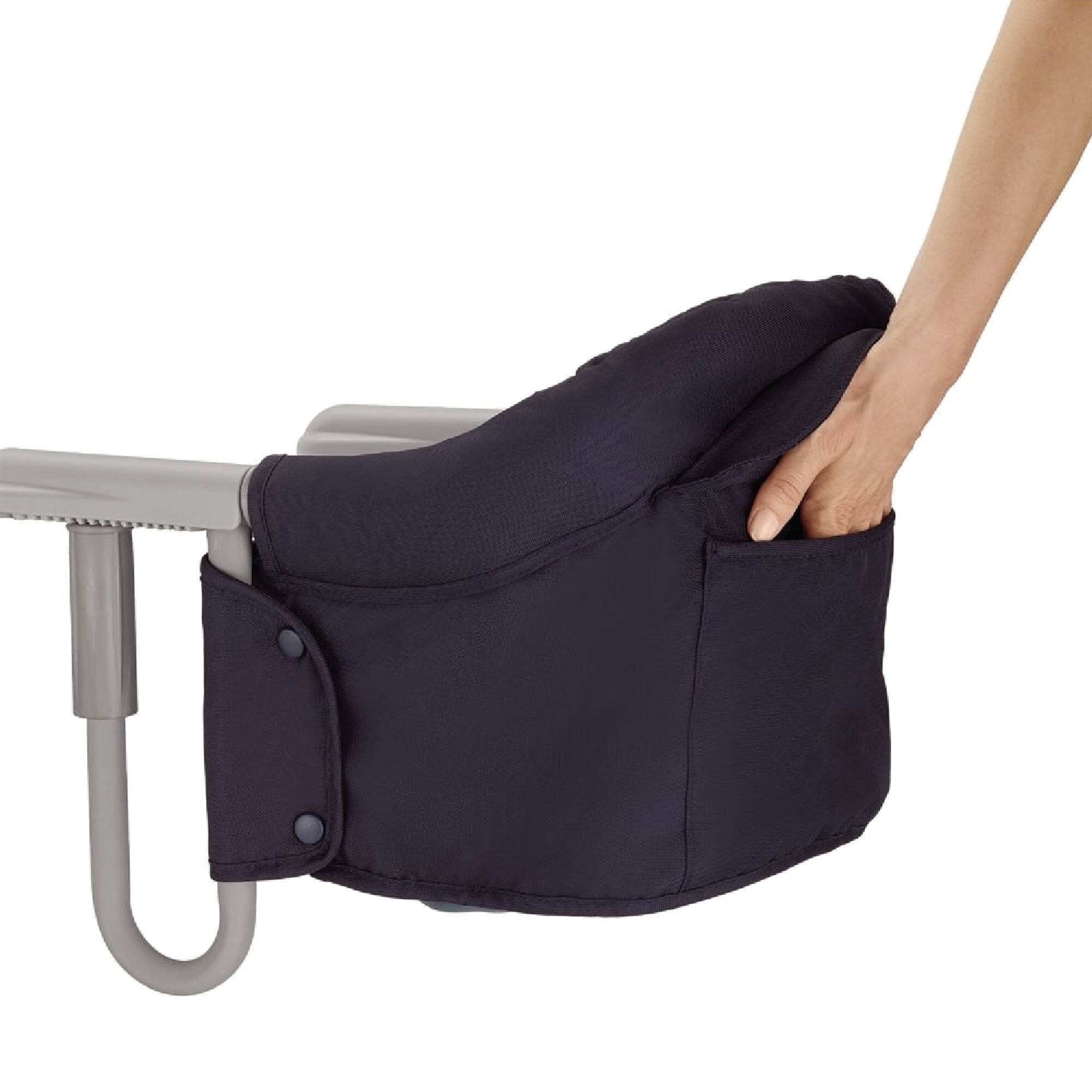Мягкое сиденье с приподнятой спинкой обеспечит ребенку комфортное пребывание. После использования стульчик легко складывается и убирается в специальную сумку для хранения и транспортировки. Он занимает мало места, отличается своим малым весом и отлично подходит для того, чтобы взять его с собой во время походов в гости, в ресторан или поездок в отпуск.