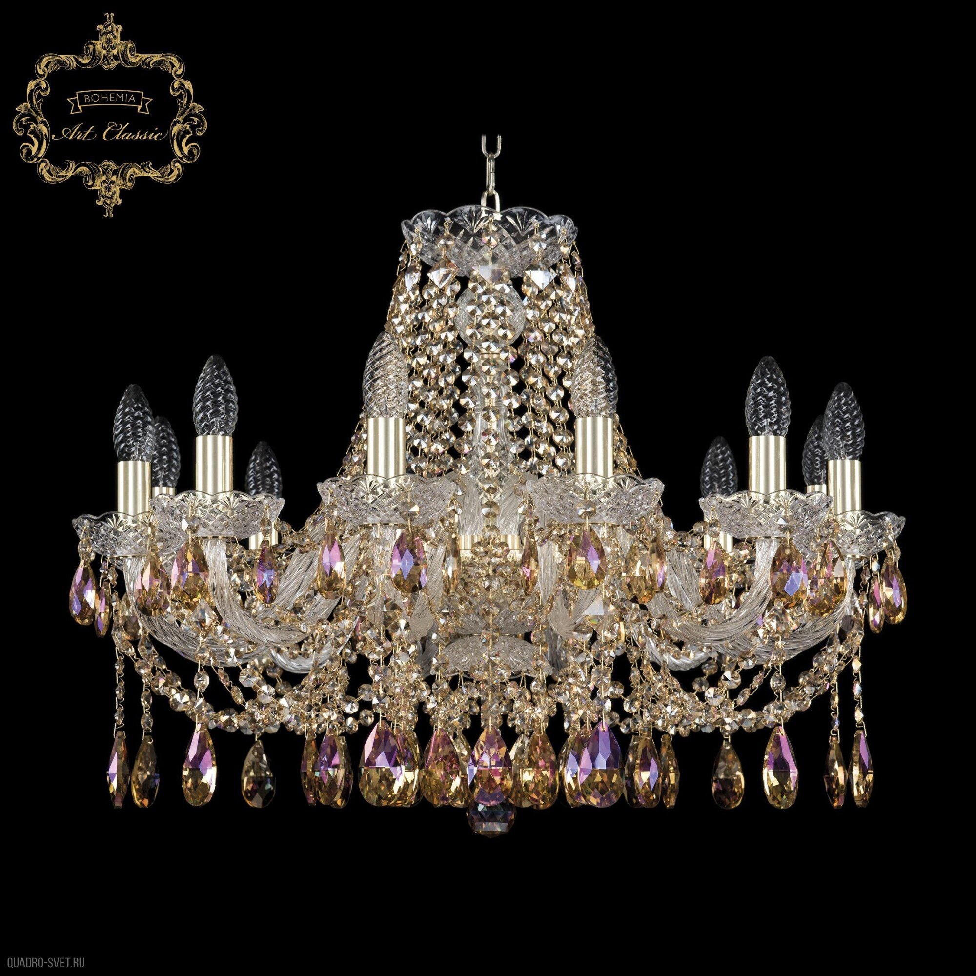 Хрустальная подвесная люстра 11.12.12.240.Gd.Sp.R777 - продукт известной компании Art Classic (Чехия). Имеет максимальную мощность 480 Вт, освещает площадь до 27 кв. м. Отлично подойдет для таких мест, как зал, холл. Впишется в интерьеры следующих стилей: классический, барокко.