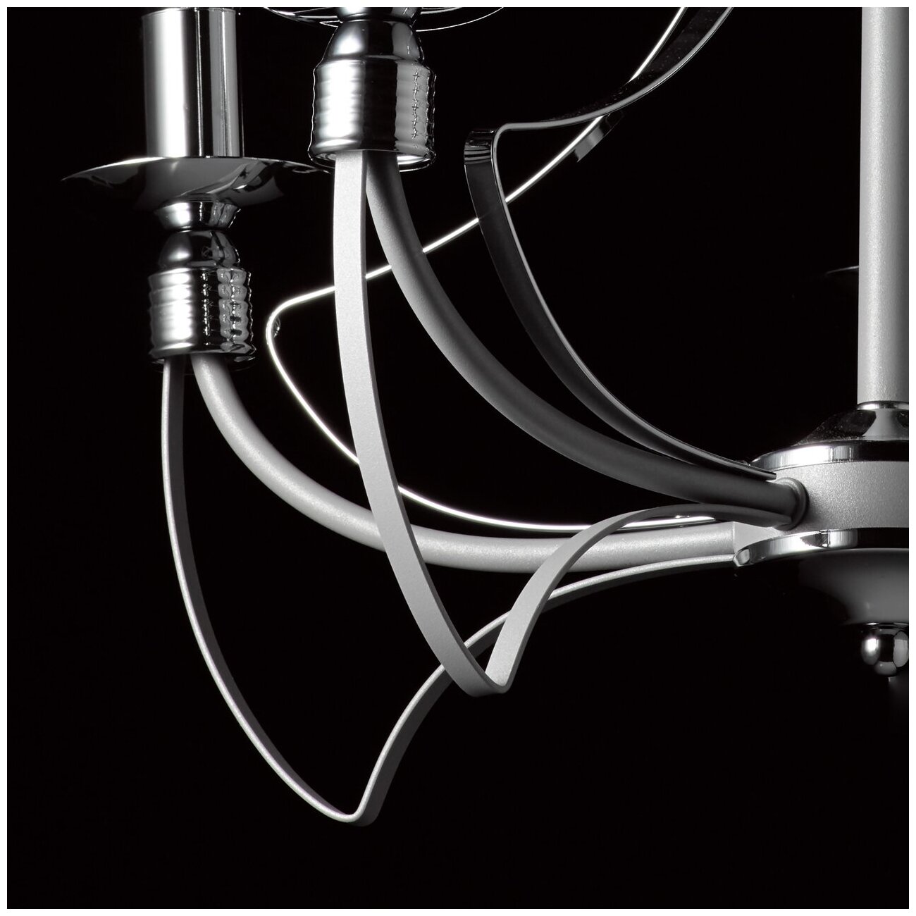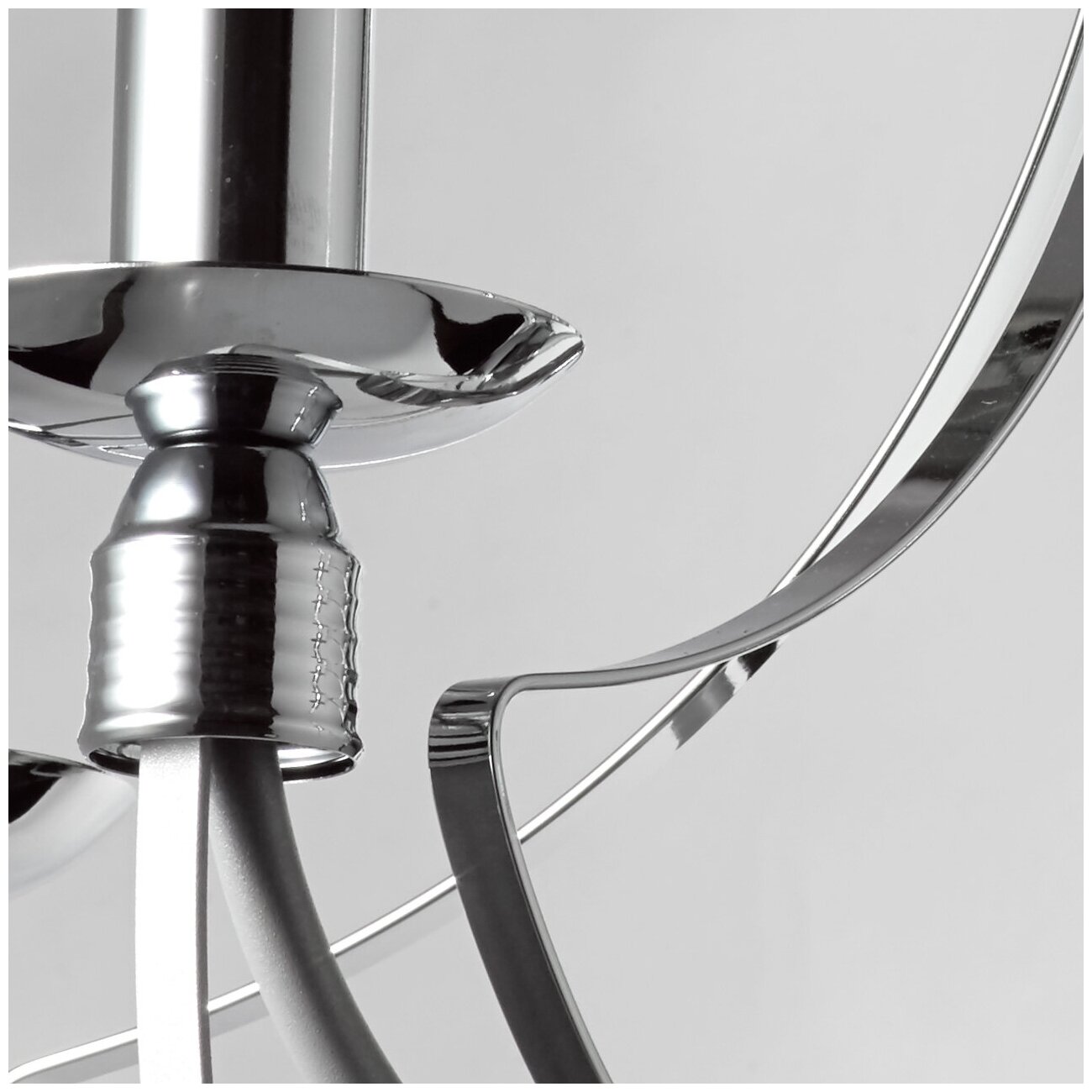 Основание светильника выполнено из металла и обработано по технологии порошкового окрашивания в серый цвет. Отдельные элементы основания гальванизированы в цвет хрома. Классический дизайн в современной интерпретации.