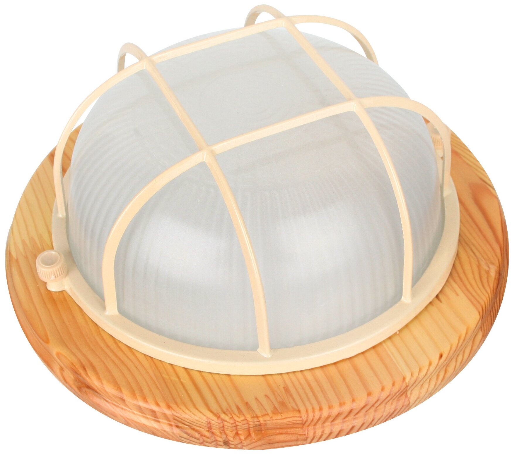 Влагозащищенный светильник Camelion 1301D Цвет клён, круг, "Решетка", размер 220х220х92мм, источник света - ЛОН, тип лампы - 60/А/Е27, патрон - E27, мощность 60Вт, 230 В, 50 Гц.IP54 Класс защиты 1.