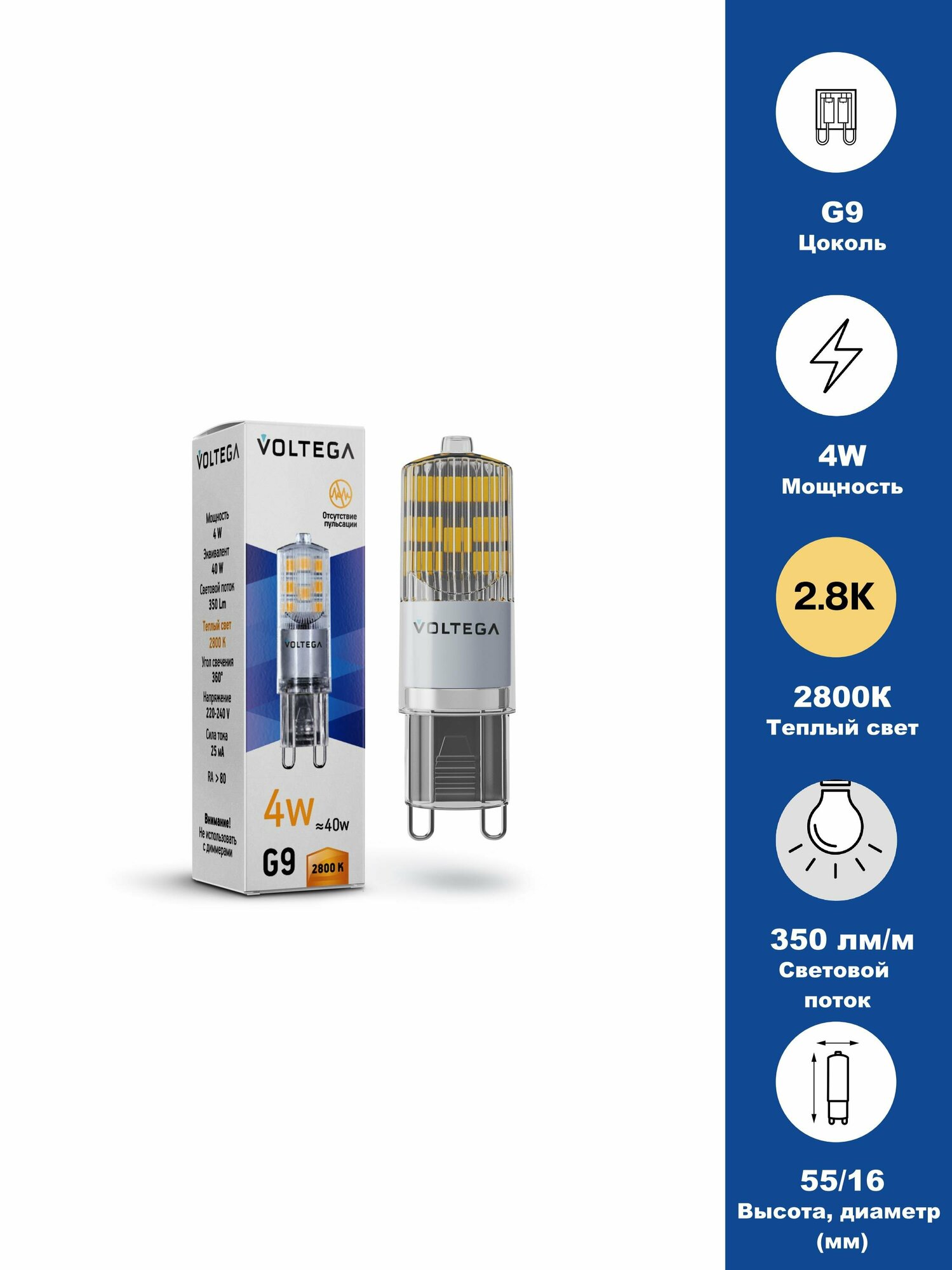 Светодиодная лампа G9 4W 2800К (теплый) Simple Voltega 7124