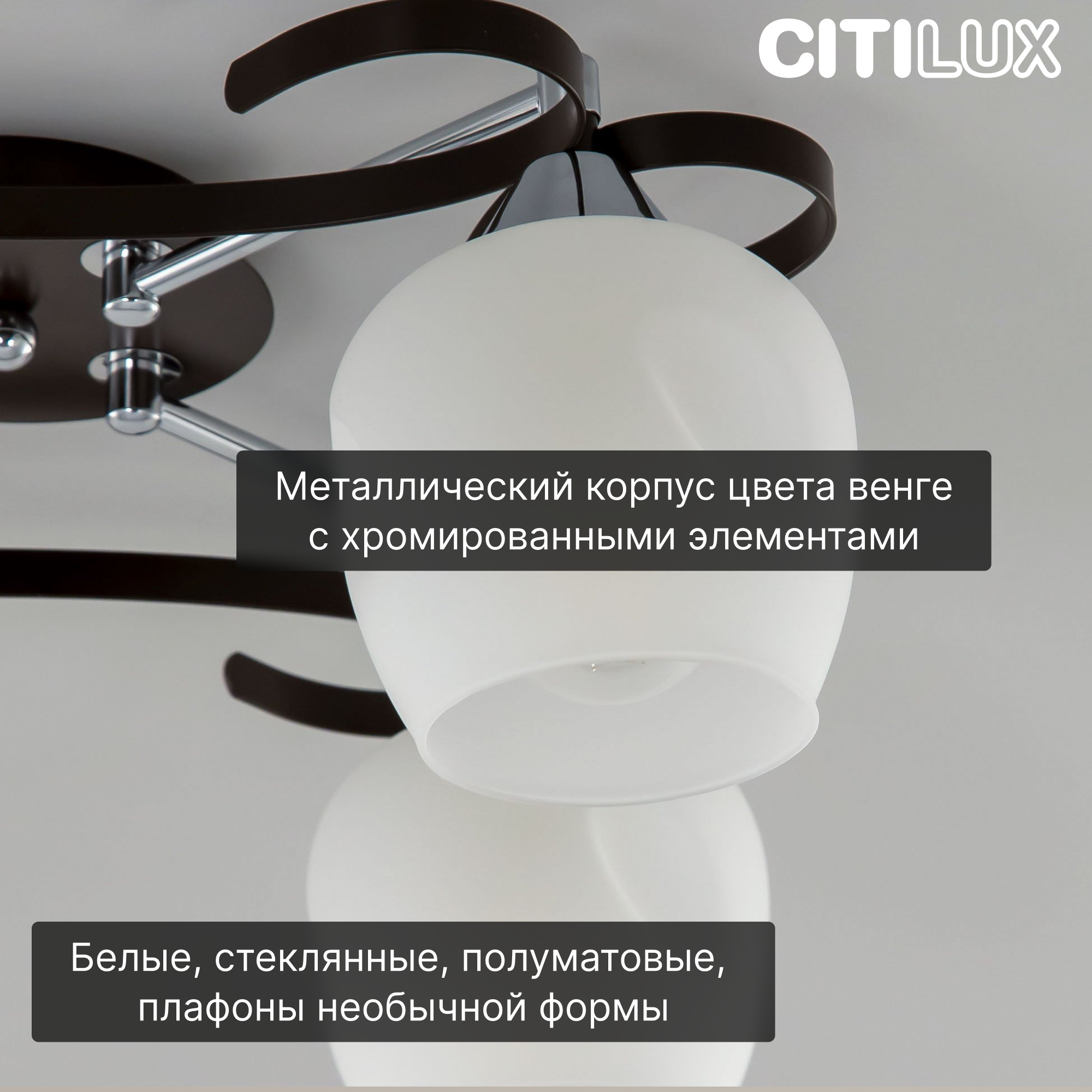 - Citilux Сюзи CL171154 Люстра потолочная цвета венге с хромированными элементами