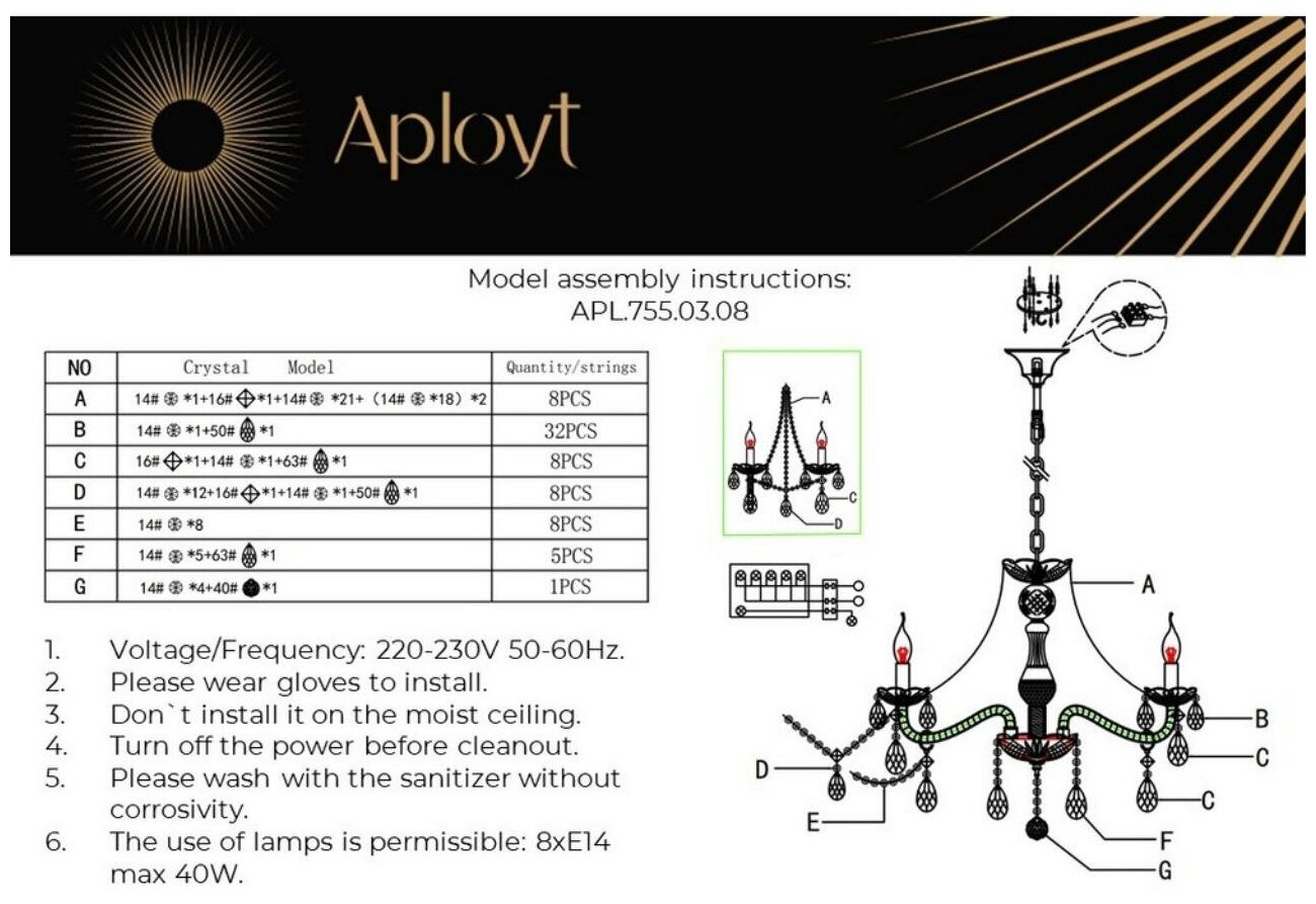 Подвесная люстра хрустальная Koletta APL.755.03.08 - продукт известной компании Aployt (Польша). Имеет максимальную мощность 320 Вт, освещает площадь до 16 кв. м. Отлично подойдет для таких мест, как гостиная, спальня, кухня, над обеденным столом, кабинет. Впишется в интерьеры следующих стилей: классический.
