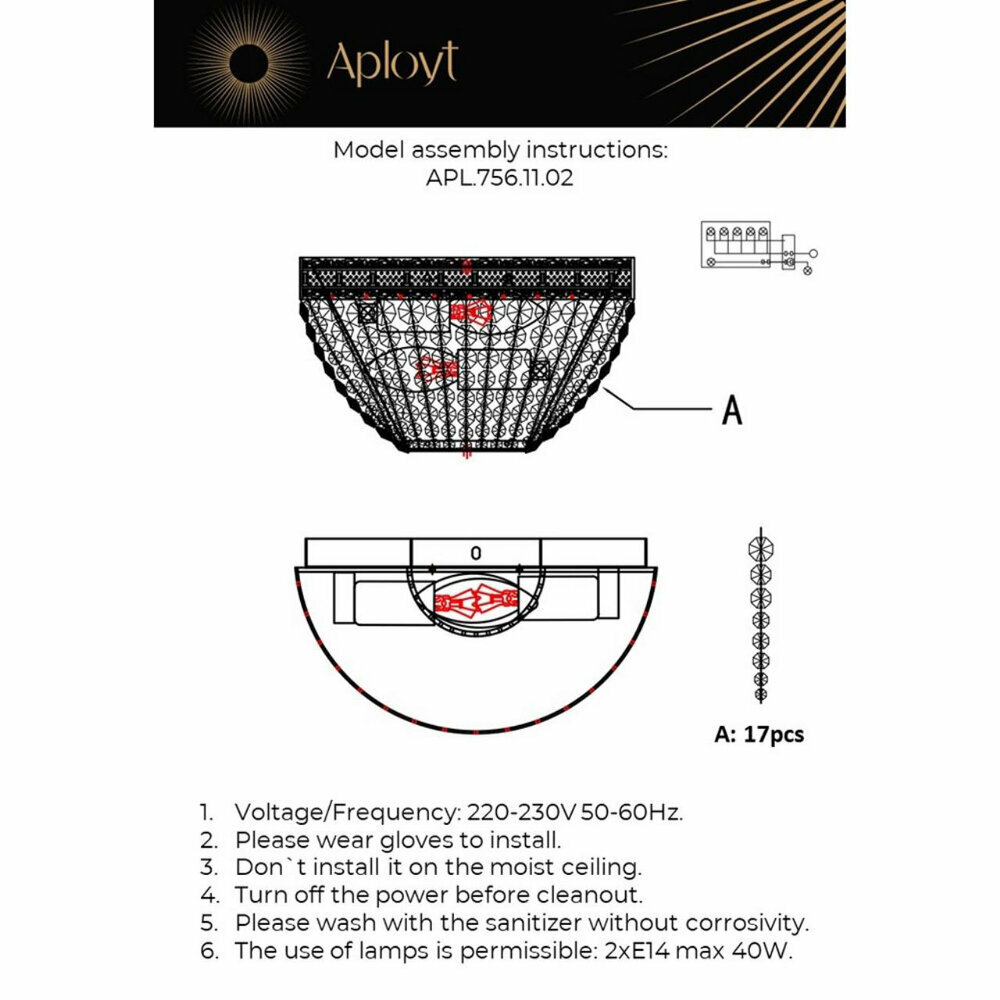Бра хрустальное Helcia APL.756.11.02 - продукт известной компании Aployt (Польша). Имеет максимальную мощность 80 Вт, освещает площадь до 4 кв. м. Отлично подойдет для таких мест, как гостиная, прихожая и коридор, кафе, спальня, кабинет. Впишется в интерьеры следующих стилей: классический.